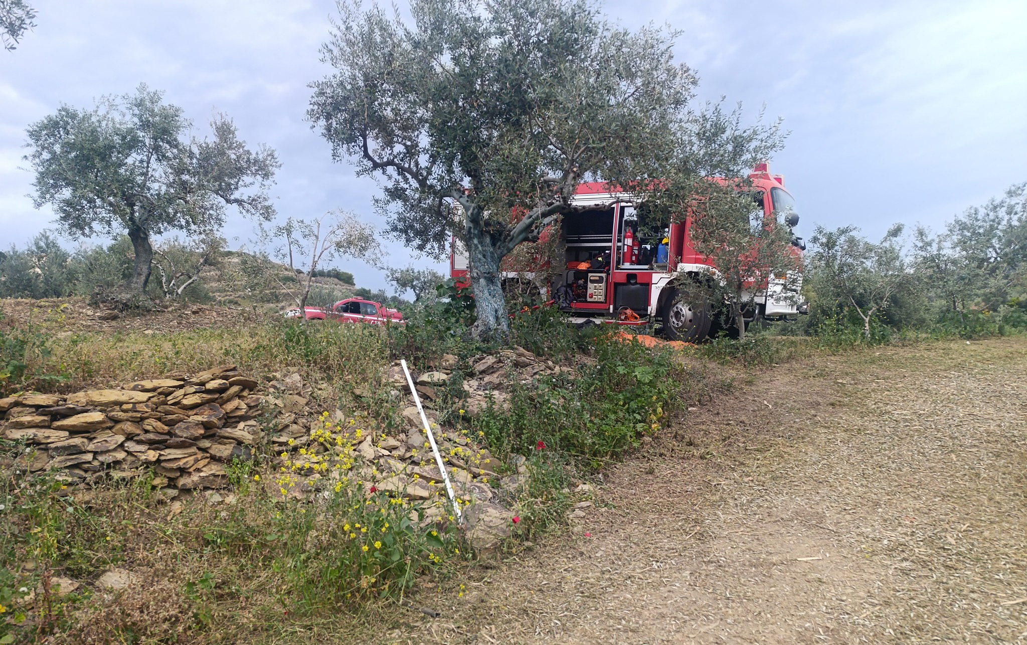Στο σημείο έσπευσαν δυνάμεις της Πυροσβεστικής Υπηρεσίας Μολάων και της Αστυνομίας, για το απεγκλωβισμό του θύματος.