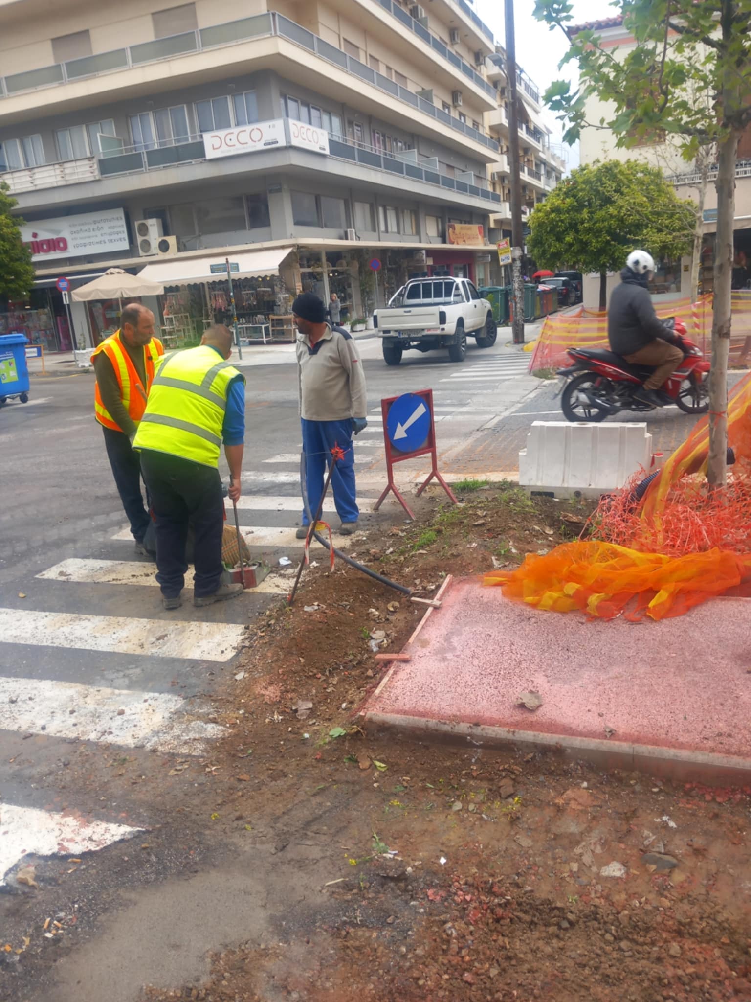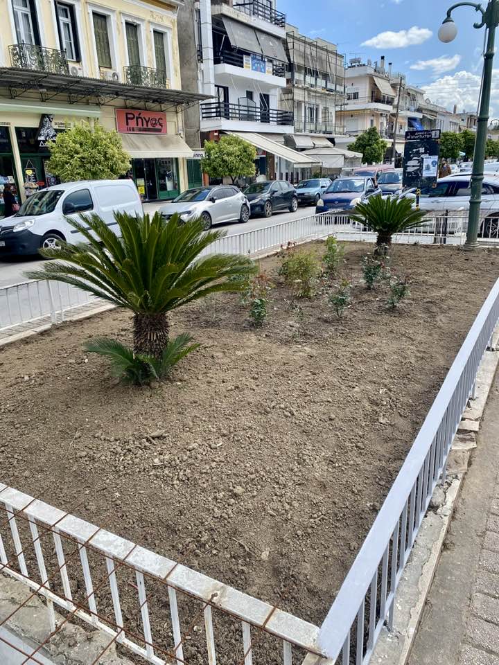 Προ ημερών είχε απομακρυνθεί και ο περιφραγμένος χώρος, όπου η ανάδοχος εταιρεία αποθήκευε τον εξοπλισμό-υλικά κλπ, στο ύψος της οδού Ευαγγελιστρίας. Ακριβώς δίπλα, στο παρτέρι, φυτεύτηκαν και δύο νέοι φοίνικες, να αναμοχλεύουν κάτι από το παρελθόν των εκριζωμένων «προγόνων» τους.