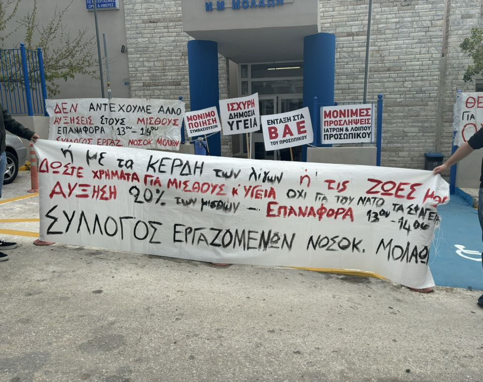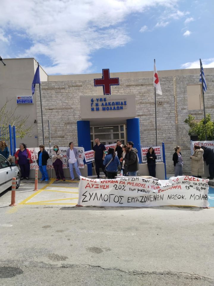 Στην πανελλαδική απεργία συμμετείχε και ο Σύλλογος Εργαζομένων του Νοσοκομείου Μολάων, οργανώνοντας διαδήλωση μπροστά από την είσοδο της νοσηλευτικής μονάδας. Οι εργαζόμενοι διατράνωσαν τις αξιώσεις τους, για ισχυρή υγεία με μόνιμες προσλήψεις ιατρικού και λοιπού προσωπικού, μονιμοποίηση συμβασιούχων, αυξήσεις μισθών, επαναφορά 13ου και 14ου μισθού, ένταξη στα βαρέα και ανθυγιεινά επαγγέλματα κ.α..