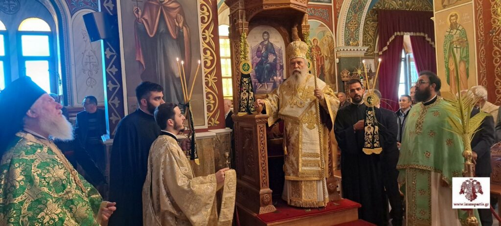 Στον περικαλλή ενοριακό ΙΝ Γεννήσεως του Χριστού Μολάων, τελέσθηκαν ο Όρθρος και η αρχιερατική Θεία Λειτουργία, προεξάρχοντος του σεβασμιωτάτου Μητροπολίτη κ. Ευσταθίου, την Κυριακή των Βαΐων (13/4).