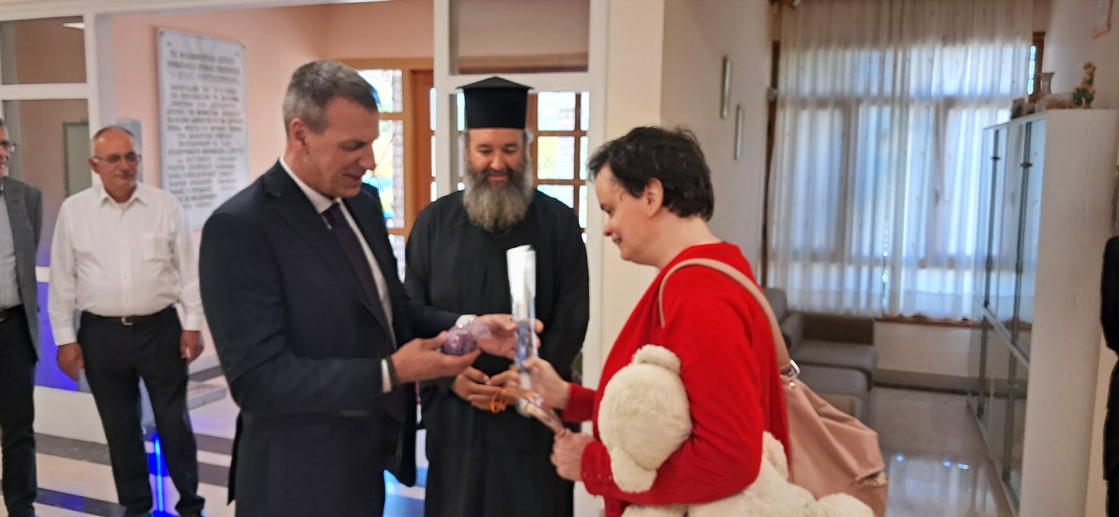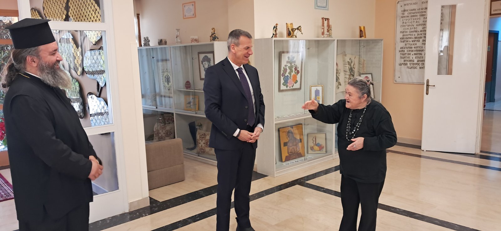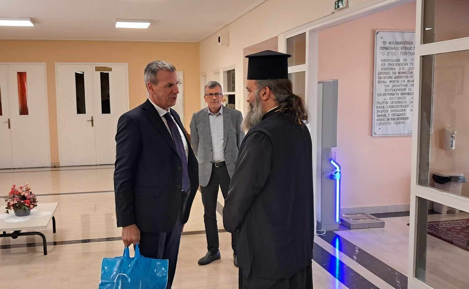 Τον κ. Βακαλόπουλο, ο οποίος συνοδευόταν από τον αντιδήμαρχο Οικονομικών Υπηρεσιών, κ. Άγγελο Αντωνάκο και τον αντιδήμαρχο Αγροτικής Ανάπτυξης, Άρδευσης, Πρασίνου και Κοιμητηρίων, κ. Ευστράτιο Κοκκορό, υποδέχθηκε ο διευθυντής του Ιδρύματος, π. Νικόλαος Τσέτσεκας.