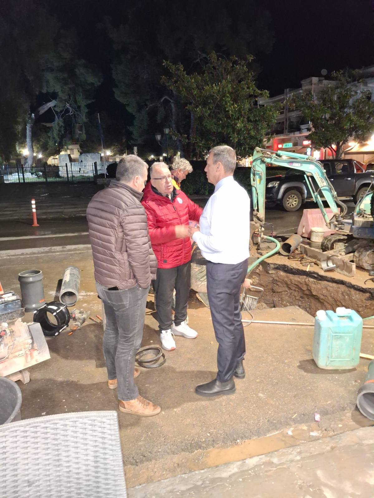 Στο σημείο των εργασιών βρέθηκαν, εκτός από τον Ηλία Τρακάκη, ο δήμαρχος Σπάρτης, Μιχάλης Βακαλόπουλος, καθώς και ο πρόεδρος της ΔΕΥΑΣ, Δημήτρης Αρβανίτης.