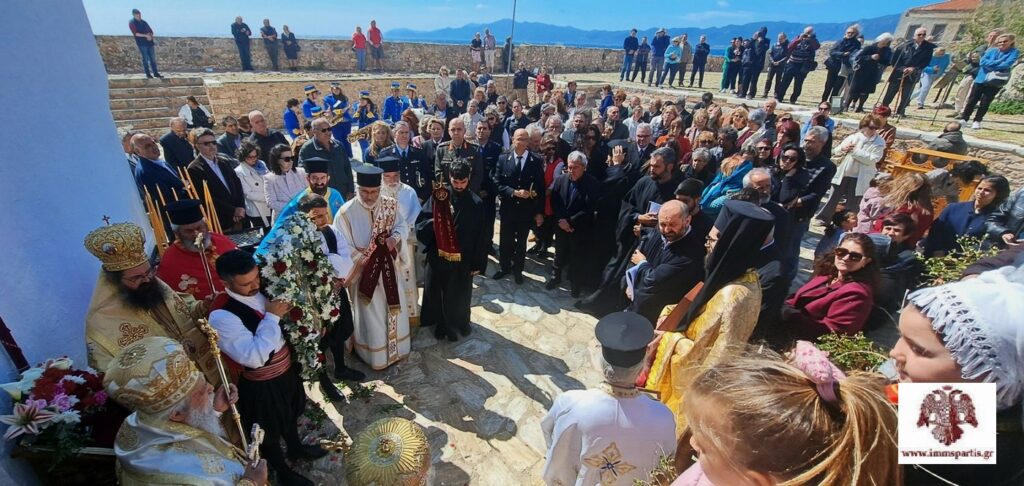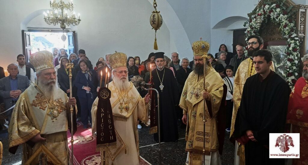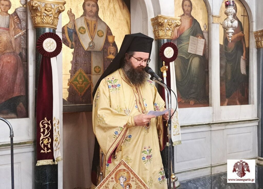 Στους ευλαβείς χριστιανούς, που είχαν κατακλύσει τον ναό και τον προαύλιο χώρο, απηύθυνε τον μελίρρυτο λόγο του ο θεοφιλέστατος Επίσκοπος Λακεδαιμονίας, ο οποίος επισήμανε, μεταξύ άλλων, ότι «θα πρέπει να παραδειγματιστούμε από την βαθιά πίστη και την υπακοή της Παναγίας στο θέλημα του Θεού, μένοντας κι εμείς ακλόνητοι στην πίστη μας σε μία εποχή που κλυδωνίζονται οι θεσμοί, οι σχέσεις, η ειρήνη και η ελπίδα». Επιπλέον, τόνισε ότι «η υπακοή στον Θεό δεν είναι απώλεια της ελευθερίας, αλλά είναι η ελευθερία στο πλήρωμά της».
