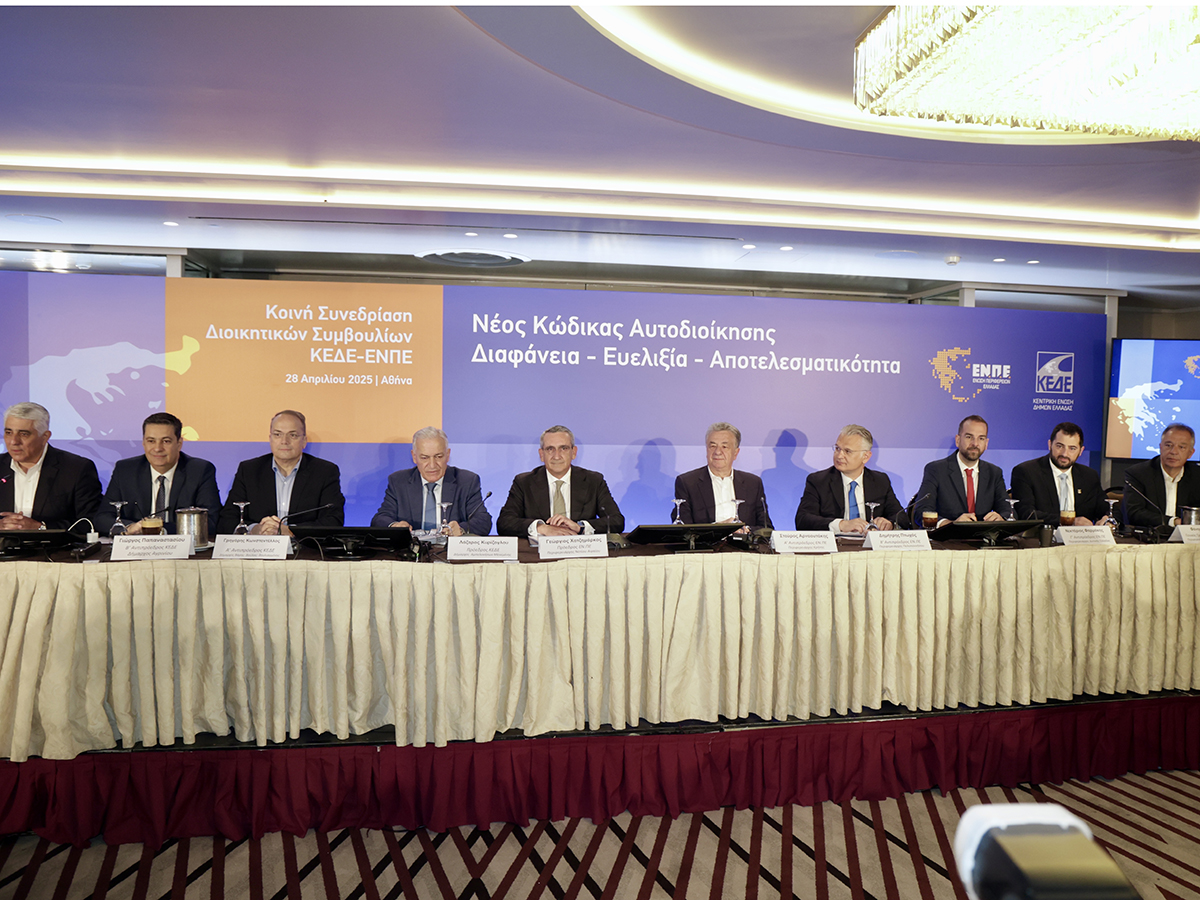 Η παρουσίαση του Νέου Κώδικα Τοπικής Αυτοδιοίκησης που σχεδιάζεται να κατατεθεί προς ψήφιση στη Βουλή από το Υπουργείο Εσωτερικών, το προσεχές διάστημα, βρέθηκε στο επίκεντρο της κοινής συνεδρίασης Κεντρικής Ένωσης Δήμων Ελλάδας (ΚΕΔΕ) και της Ένωσης Περιφερειών Ελλάδας (ΕΝΠΕ), που πραγματοποιήθηκε τη Δευτέρα (28/4), για πρώτη φορά στην ιστορία των δύο βαθμών Αυτοδιοίκησης.
