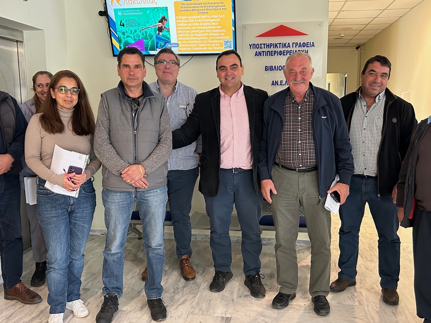 Συνάντηση εργασίας με εκπροσώπους του ΤΟΕΒ Αμυκλών είχε, την Τρίτη (29/4), ο αντιπεριφερειάρχης Λακωνίας, Θεόδωρος Βερούτης, παρουσία του γενικού διευθυντή Διεύθυνσης Αγροτικής Οικονομίας και Κτηνιατρικής Γιώργου Μπουραζάνη, του αν. προϊστάμενου Διεύθυνσης Αγροτικής Οικονομίας και Κτηνιατρικής της ΠΕ Λακωνίας Μιχάλη Θεοφιλάκου και υπηρεσιακών παραγόντων. Στο επίκεντρο της συνάντησης συζητήθηκε η στήριξη που έχει σκοπό να προσφέρει η ΠΕ Λακωνίας, μέσω προγραμματικής σύμβασης, για τον εκσυγχρονισμό και τη βελτιστοποίηση της λειτουργίας του αρδευτικού δικτύου και την ορθολογική διαχείριση των υδάτων.