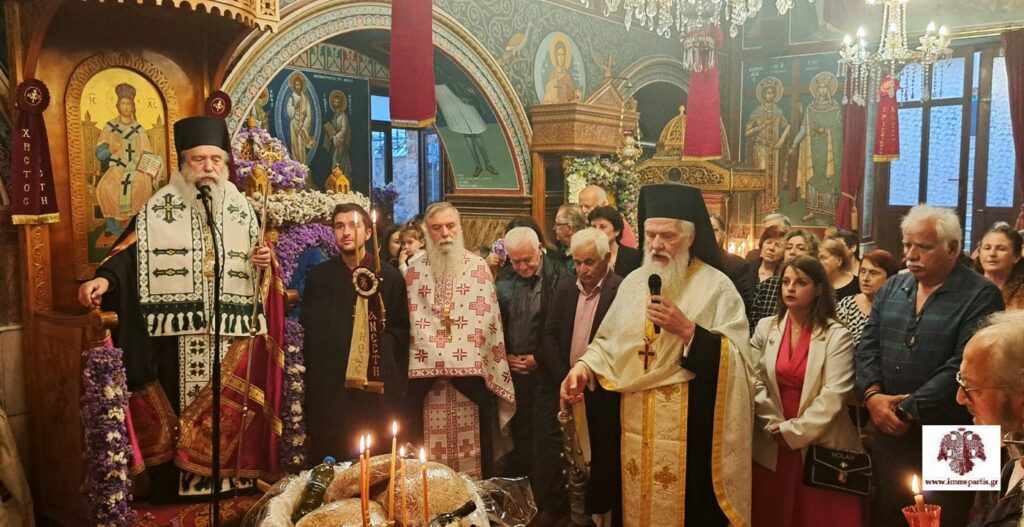 Ακολούθησαν, σε κατανυκτικό κλίμα, η λιτάνευση της εικόνας του Αγίου και η τέλεση δέησης στην πλατεία του χωριού.