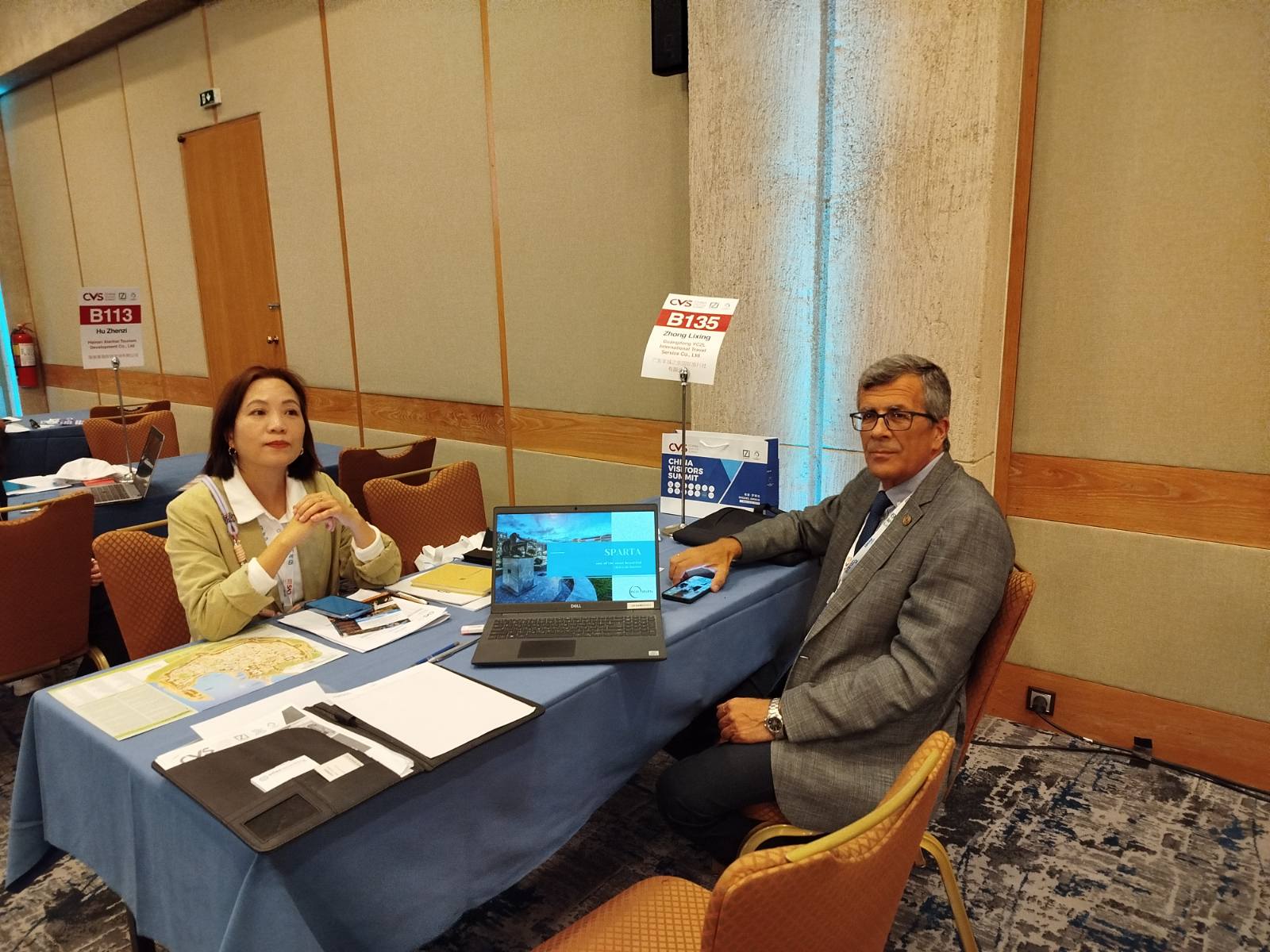 Εκπροσωπώντας τον Δήμο Σπάρτης, ο αντιδήμαρχος Χρήστος-Άγγελος Αντωνάκος και ο προϊστάμενος του Τμήματος Τουρισμού, Χρήστος Μητράκος, είχαν προγραμματισμένες συναντήσεις με επιλεγμένους Κινέζους επαγγελματίες του τουρισμού (tour operators, travel agents, MICE managers, OTAs, luxury & adventure agents), στους οποίους παρουσίασαν το τουριστικό προϊόν της Σπάρτης και συζήτησαν τη δυνατότητα συνεργασίας και περαιτέρω προβολής στην κινεζική αγορά.