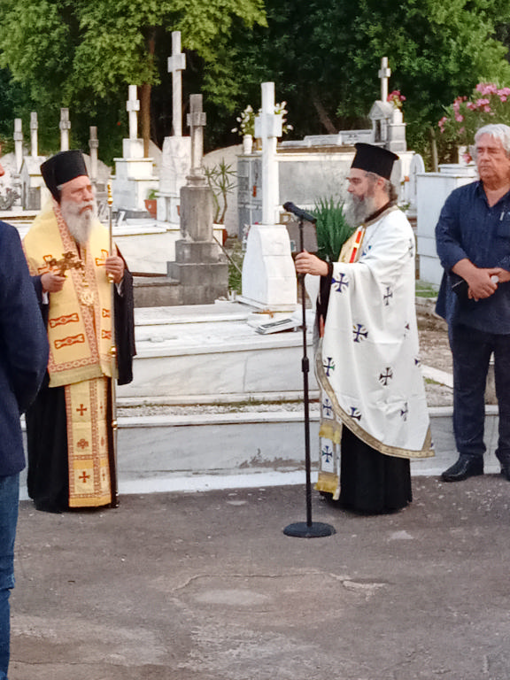 Τα τελευταία χρόνια ο σεβασμιώτατος Μητροπολίτης μας κ.κ. Ευστάθιος έχει καθιερώσει την τέλεση του Εσπερινού της Πεντηκοστής στον κοιμητηριακό Ναό του Αγίου Γεωργίου Ψυχικού κι εν συνεχεία τη λιτάνευση της εικόνας της Πεντηκοστής στο χώρο του κοιμητηρίου συνοδεία της Φιλαρμονικής Δήμου Σπάρτης. Έτσι και φέτος πραγματοποιήθηκε ο Εσπερινός της Πεντηκοστής από τον Μητροπολίτη μας και τους αρμόδιους ιερείς του Οσίου Νίκωνος Σπάρτης, πατέρες Αθανάσιο Σπηλιώτη και Κωνσταντίνο Σκάλτσα, καθώς κι από τον πρωτοψάλτη Θεόδωρο Τσαγκαρούλη με τους βοηθούς του.