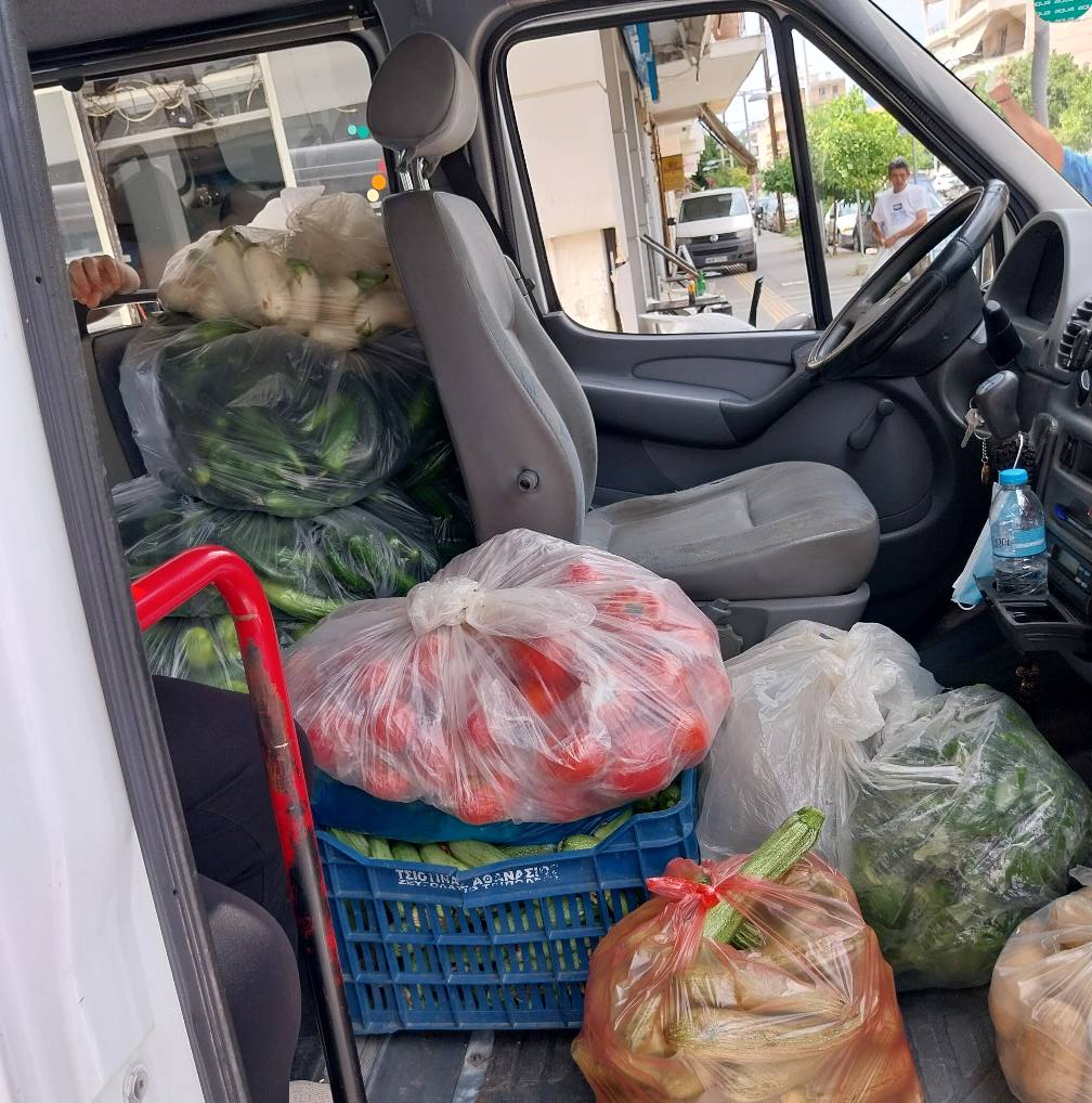 Οι παραγωγοί της τοπικής λαϊκής αγοράς, αυτοί οι αφανείς ήρωες της καθημερινότητας, μαζεύουν ό,τι περισσεύει. Όχι ως υπολείμματα, μα ως πολύτιμα δώρα. Τομάτες, μαρούλια, πορτοκάλια, πατάτες -καρποί γης και κόπου, που αντί να χαθούν, βρίσκουν τον δρόμο τους προς εκείνους που τους έχουν ανάγκη.