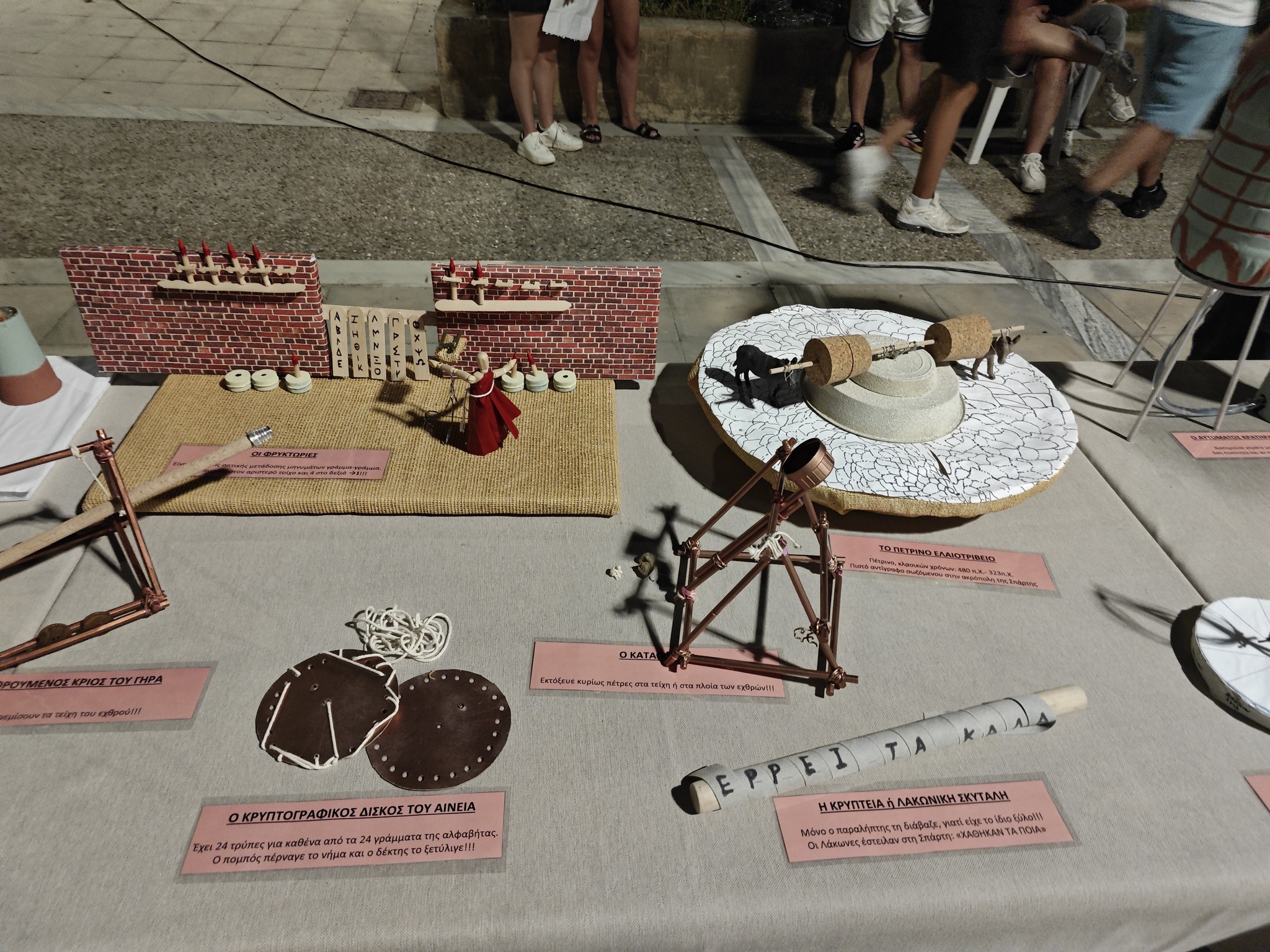 Ιδιαίτερο ενδιαφέρον προκάλεσε η έκθεση εφευρέσεων της αρχαιότητας, τις οποίες κατασκεύασαν οι μαθητές του Λυκείου Γερακίου, αποδεικνύοντας την αξία της βιωματικής μάθησης και της σύνδεσης της εκπαίδευσης με την πολιτιστική κληρονομιά.