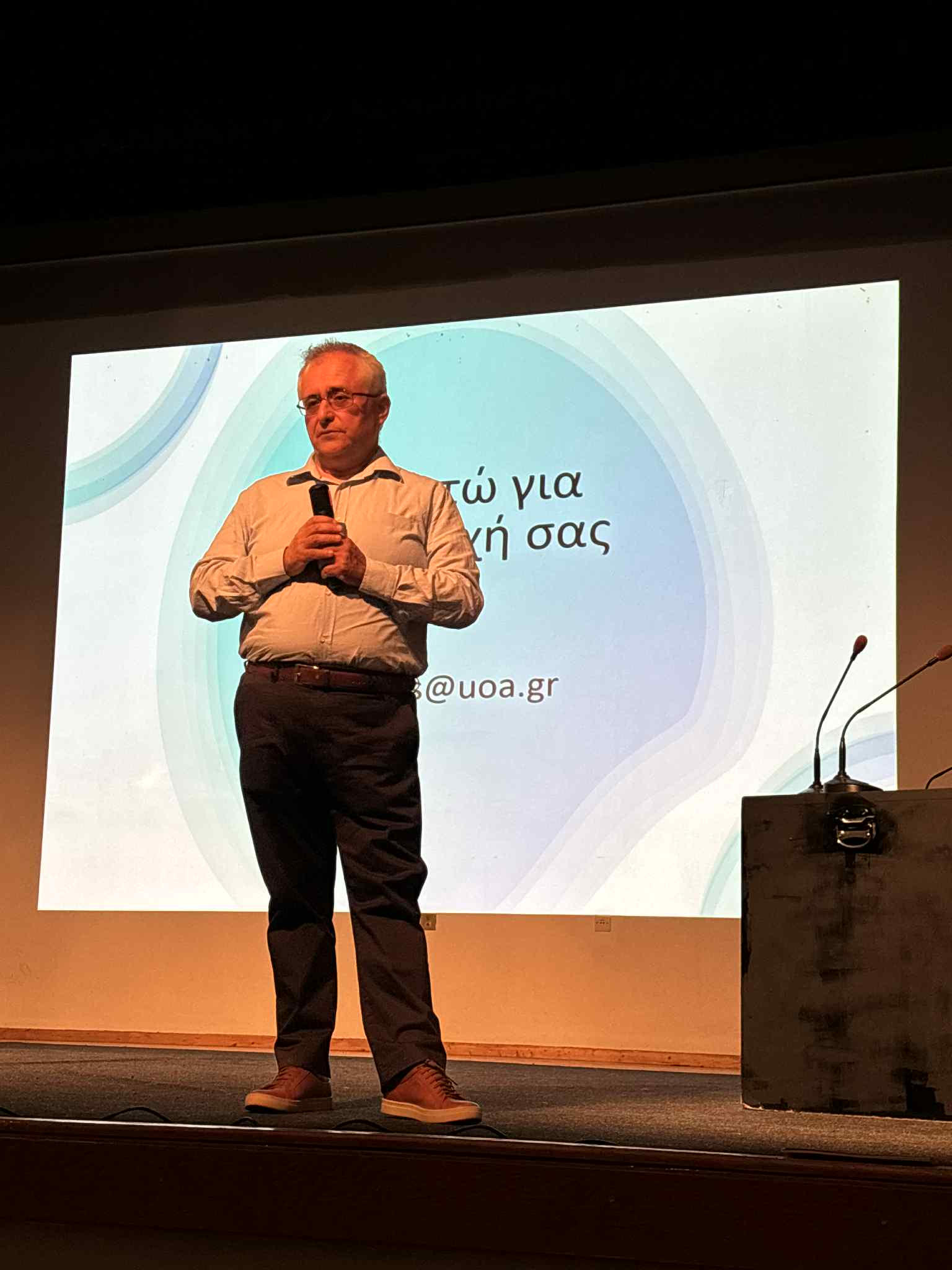 Η βραδιά εμπλουτίστηκε με την εξαιρετικά ενδιαφέρουσα ομιλία του Καθηγητή Στοχαστικής Επιχειρησιακής Έρευνας του Τμήματος Μαθηματικών του ΕΚΠΑ, Απόστολου Μπουρνέτα, με τίτλο «Μαθηματικά Παντού». Ο καθηγητής παρουσίασε με γλαφυρότητα πώς τα μαθηματικά διεισδύουν σε κάθε πτυχή της καθημερινότητας, φωτίζοντας τις πρακτικές διαστάσεις μιας επιστήμης που συχνά παραμένει αφηρημένη στον νου των πολλών. Με σαφή και κατανοητό λόγο, εξήγησε πως τα μαθηματικά δεν είναι απλώς ένα εργαλείο επίλυσης προβλημάτων, αλλά ένα μέσο κατανόησης και διαμόρφωσης του κόσμου γύρω μας. Ενθάρρυνε τους μαθητές να συνεχίσουν να ρωτούν, να αμφιβάλλουν και να δημιουργούν, τονίζοντας πως η πορεία τους στα μαθηματικά αποτελεί μια ευκαιρία και όχι ένα εμπόδιο.