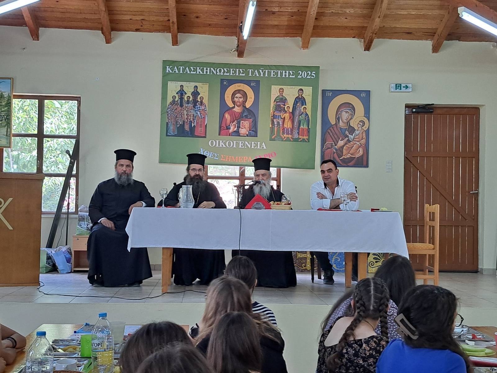 Τον αντιπεριφερειάρχη υποδέχτηκαν ο σεπτός Ποιμενάρχης, ο θεοφιλέστατος Επίσκοπος Λακεδαιμονίας κ. Θεόφιλος και τα στελέχη της τρέχουσας κατασκηνωτικής περιόδου (3η κατά σειρά περίοδος – β’ κοριτσιών), ο υπεύθυνος ιερέας, πατέρας Ανδρέας Κόνιαρης, η υπεύθυνη του κατασκηνωτικού προγράμματος, Κανέλλα Σπηλιώτη, οι ομαδάρχες, το προσωπικό, οι εθελοντές και τα παιδιά.