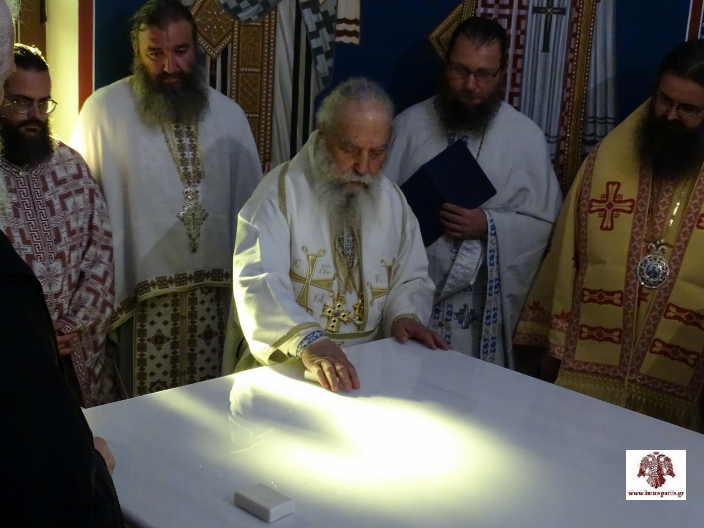 Μια ημέρα νωρίτερα, το απόγευμα της Παρασκευής (18/7), στον ιερό ναό τελέσθηκε -με μεγαλοπρέπεια και ιεροπρέπεια- ο εσπερινός των εγκαινίων. Αρχικά, στον περιβάλλοντα χώρο, προπορευομένων του Ιερού Ευαγγελίου, δεκάδων κληρικών, των ιεροψαλτών και της Φιλαρμονικής του Δ. Σπάρτης, έγινε η υποδοχή των ιερών λειψάνων, τα οποία μετέφερε ο σεβασμιώτατος Μητροπολίτης κ. Ευστάθιος. Στην υποδοχή συμμετείχαν επίσης τοπικοί άρχοντες και πολλοί πιστοί. Αμέσως μετά, εντός του ιερού βήματος του ναού, έλαβε χώρα η τελετή καταθέσεως των ιερών λειψάνων, προεξάρχοντος του σεπτού Ποιμενάρχη, ενώ ακολούθησε ο αρχιερατικός εσπερινός.