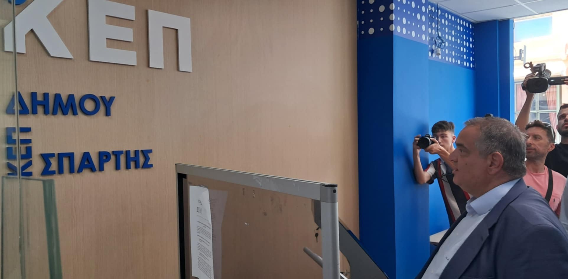 Τον υφυπουργό Εσωτερικών, ο οποίος συνοδευόταν από τον γραμματέα της Αποκεντρωμένης Διοίκησης Πελοποννήσου, Δυτικής Ελλάδας και Ιονίου, Δημήτρη Κατσαρό, υποδέχθηκε στην είσοδο του δημαρχείου, ο δήμαρχος Σπάρτης. Πρώτος σταθμός της επίσκεψης ήταν το ανανεωμένο Κέντρο Εξυπηρέτησης Πολιτών Σπάρτης επί της οδού Ευαγγελιστρίας, το οποίο από την Τετάρτη (23/7) άνοιξε και πάλι τις πύλες του, μετά τις ολιγοήμερες εργασίες για την αναβάθμιση και τη βελτίωσή του.