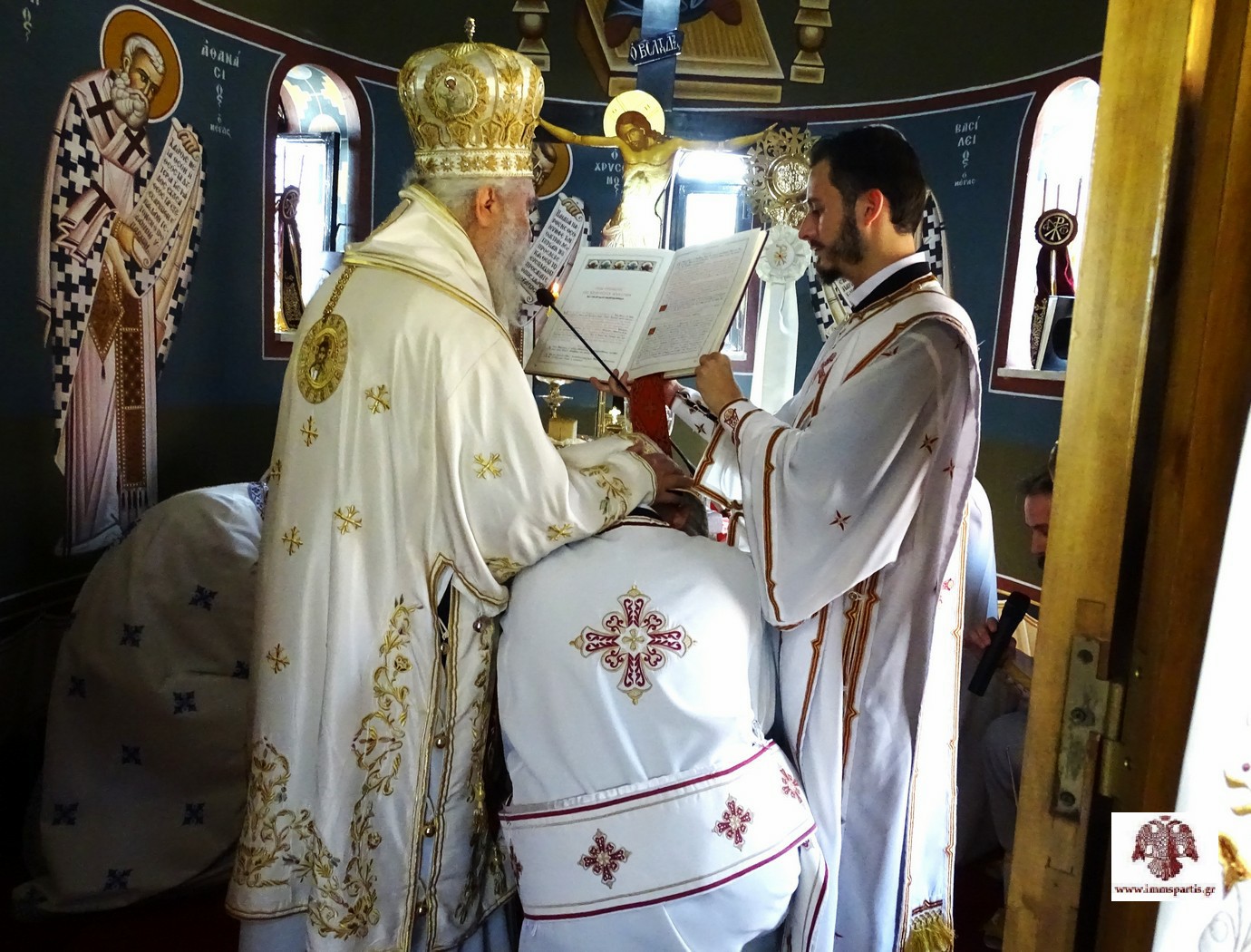 Ολοκληρώνοντας, ευχαρίστησε με θερμά λόγια τον σεπτό Μητροπολίτη Ευστάθιο για την πνευματική καθοδήγηση και για το δώρο της ιεροσύνης που του προσέφερε. Στην αντιφώνησή του, ο Μητροπολίτης τόνισε ότι κάθε φορά που χειροτονεί ένα νέο άνθρωπο βιώνει ένα θαύμα, εξαίροντας εφ’ ενός το ήθος και την εργατικότητα του νέου διακόνου, π. Ιωάννη, κι επαινώντας αφ’ εταίρου τη σύζυγό του χειροτονηθέντος, Αικατερίνη.