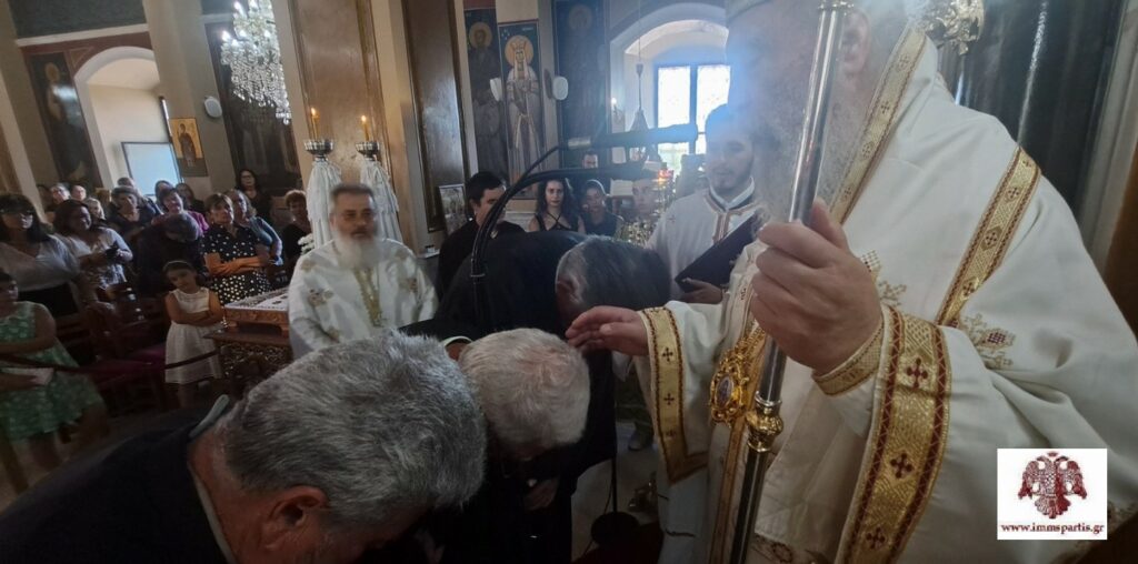 Ο σεβασμιώτατος ευχαρίστησε τον π. Γεώργιο και όλους τους ενορίτες για την αγάπη και τις ευχές τους, ενώ στη συνέχεια προέβη στην απονομή του οφίκιου του οικονόμου στον π. Γεώργιο, ευχόμενος να συνεχίσει «την ευδόκιμη διακονία του, με γνώμονα την πίστη στον Θεό, την αγάπη προς τον συνάνθρωπο, τη συγγνώμη και τη μετάνοια».