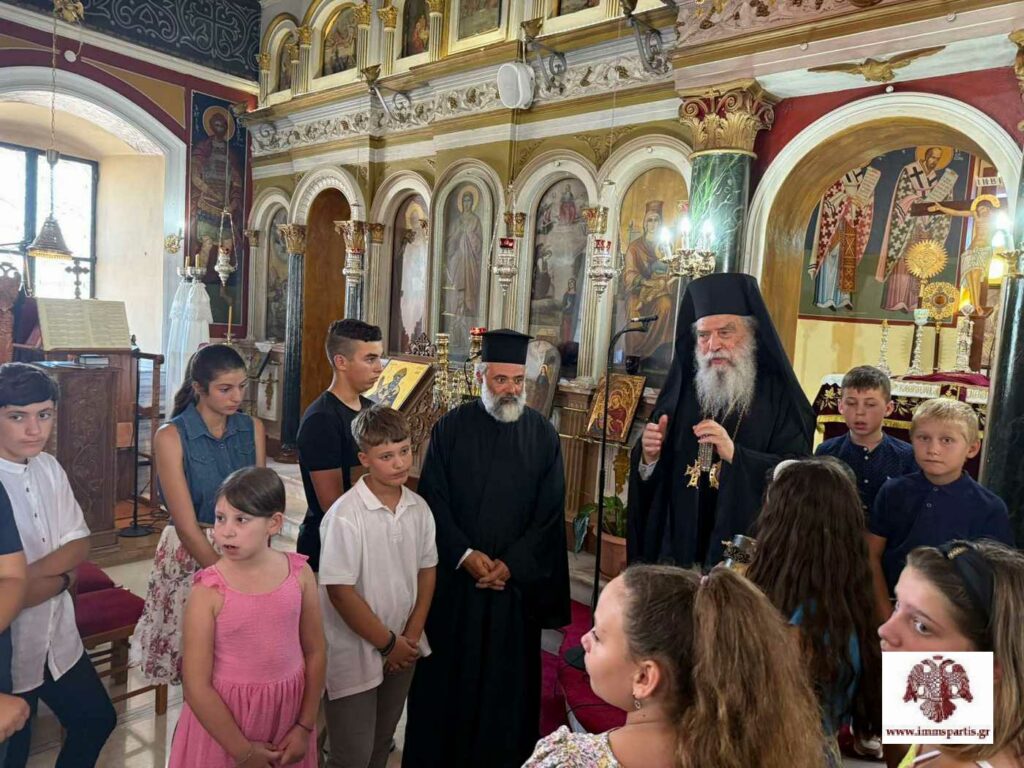 Μετά το πέρας της λατρευτικής σύναξης, τα παιδιά του χωριού πρόσφεραν στον σεβασμιώτατο ένα αναμνηστικό δώρο μέσα σε χαρμόσυνο κλίμα.