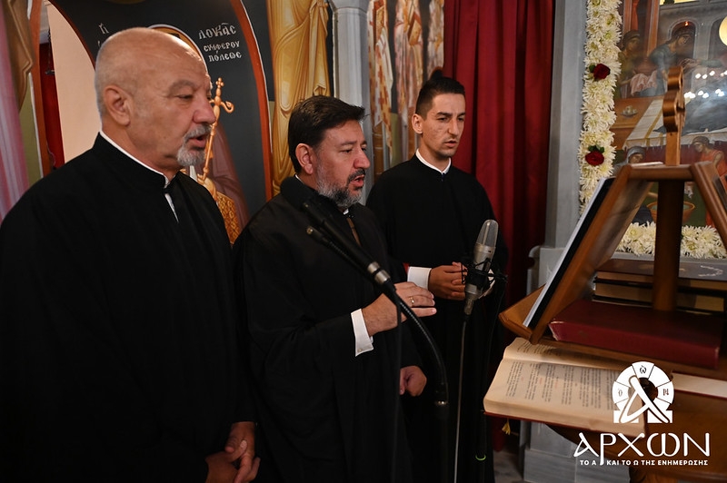 Στο αναλόγιο έψαλε η Βυζαντινή Χορωδία υπό τη διεύθυνση του Νικολάου Ταπραντζή, προσδίδοντας κατανυκτικότητα και μεγαλοπρέπεια στις ιερές ακολουθίες.
