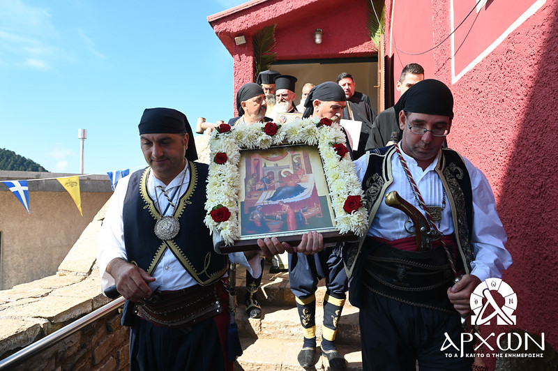 Ακολούθησε η λιτανεία της ιερής εικόνας με ιδιαίτερη μεγαλοπρέπεια, συνοδεία της Φιλαρμονικής του Δήμου Ανατολικής Μάνης, καθώς και ενστόλων με παραδοσιακές φορεσιές από το Σώμα Απόδοσης Τιμών του δήμου.