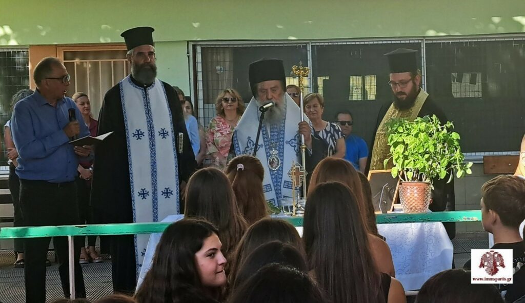 Το «πρώτο κουδούνι» με ευχές και τέλεση του καθιερωμένου αγιασμού, σηματοδότησε την έναρξη του σχολικού έτους στις μονάδες Πρωτοβάθμιας και Δευτεροβάθμιας Εκπαίδευσης της Σπάρτης. Ο σεβασμιώτατος Μητροπολίτης Μονεμβασίας και Σπάρτης κ. Ευστάθιος τέλεσε αρχικά τον καθιερωμένο αγιασμό στον προαύλιο χώρο του 3ου Γυμνασίου. Απευθυνόμενος στα παιδιά, ο σεπτός Ποιμενάρχης ευχήθηκε να έχουν «μία ευλογημένη χρονιά με υγεία, σωματική και πνευματική, και χαρά». Παράλληλα, μίλησε για «την αξία της ολοκληρωμένης Παιδείας, ιδιαίτερα στις ημέρες μας που οι κοινωνικές απαιτήσεις και οι προκλήσεις είναι πολλαπλάσιες από το παρελθόν», επισημαίνοντας την ανάγκη «οι διδαχές της Ορθόδοξης Πίστης μας να αποτελέσουν τον κύριο οδοδείκτη». Ολοκληρώνοντας, ευχήθηκε στους εκπαιδευτικούς, «να έχουν φώτιση Θεού, δύναμη και υπομονή, ώστε να επιτελέσουν με επιτυχία το κομβικής σημασίας έργο τους».