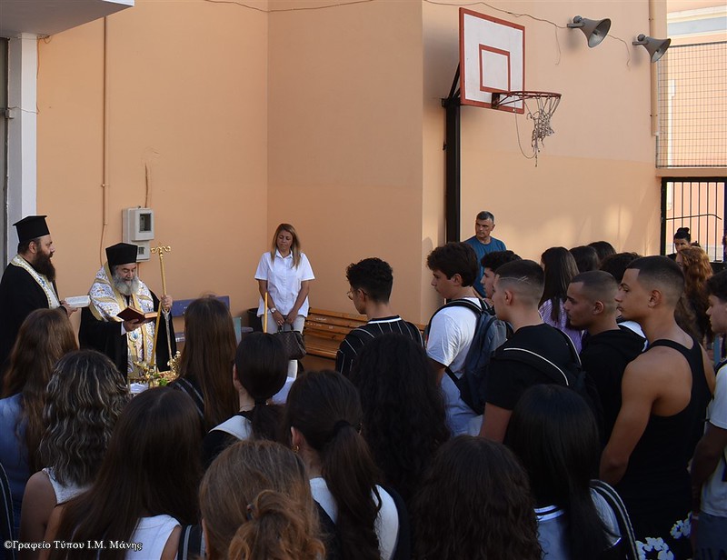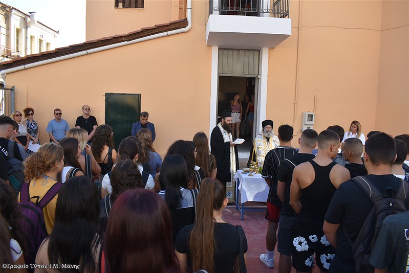 Στο Γύθειο, ο σεβασμιώτατος Μητροπολίτης Μάνης κ. Χρυσόστομος Γ’ μετέβη στο Γενικό Λύκειο Γυθείου, όπου και τέλεσε τον αγιασμό, πλαισιούμενος από τον π. Χριστόδουλο Κρουστάλη. Ο σεβασμιώτατος ευχήθηκε καλή χρονιά τονίζοντας, πρώτον, όλοι -διδιάσκοντες και διδασκόμενοι- να έχουν την ευλογία του Θεού και δεύτερον, οι μαθητές/τριες να μελετούν όλα τα μαθήματα ανεξαιρέτως.