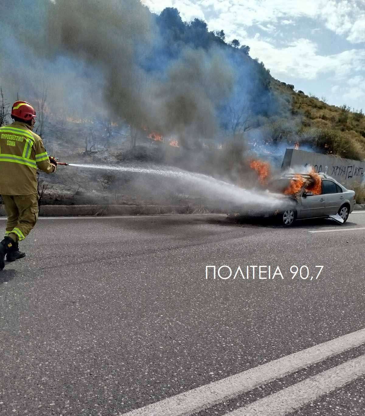 Η φωτιά δεν περιορίστηκε μόνο στο όχημα, αλλά εξαπλώθηκε γρήγορα σε παρακείμενη αγροτική έκταση, λόγω της ξηρής βλάστησης που παραμένει ακαθάριστη κατά μήκος του οδικού άξονα. Στο σημείο επιχειρούν αυτή τη στιγμή πυροσβεστικές δυνάμεις με οχήματα και προσωπικό, προκειμένου να θέσουν υπό έλεγχο την πυρκαγιά.