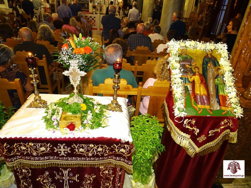 Με την προσήκουσα λαμπρότητα και την πνευματική ευφροσύνη που αρμόζει στην ημέρα, εορτάστηκε το Σάββατο 20 Σεπτεμβρίου η ιερά μνήμη του Αγίου Μεγαλομάρτυρος Ευσταθίου, της συζύγου αυτού Θεοπίστης και των τέκνων τους, Αγαπίου και Θεοπίστου. Η ημέρα αυτή κομίζει πάντοτε ιδιαίτερη χαρά στην τοπική μας Εκκλησία, καθώς συμπίπτει με τα σεπτά Ονομαστήρια του ποιμενάρχη μας, σεβασμιωτάτου Μητροπολίτη Μονεμβασίας και Σπάρτης κ. Ευσταθίου.