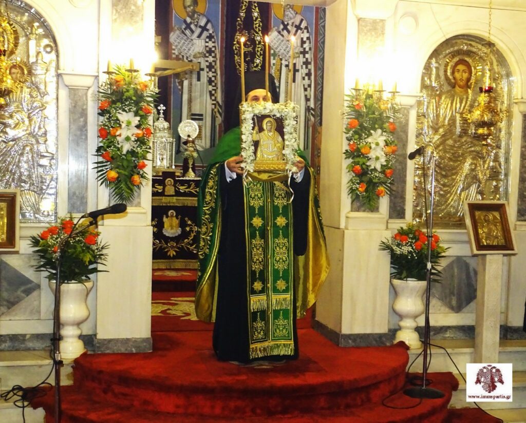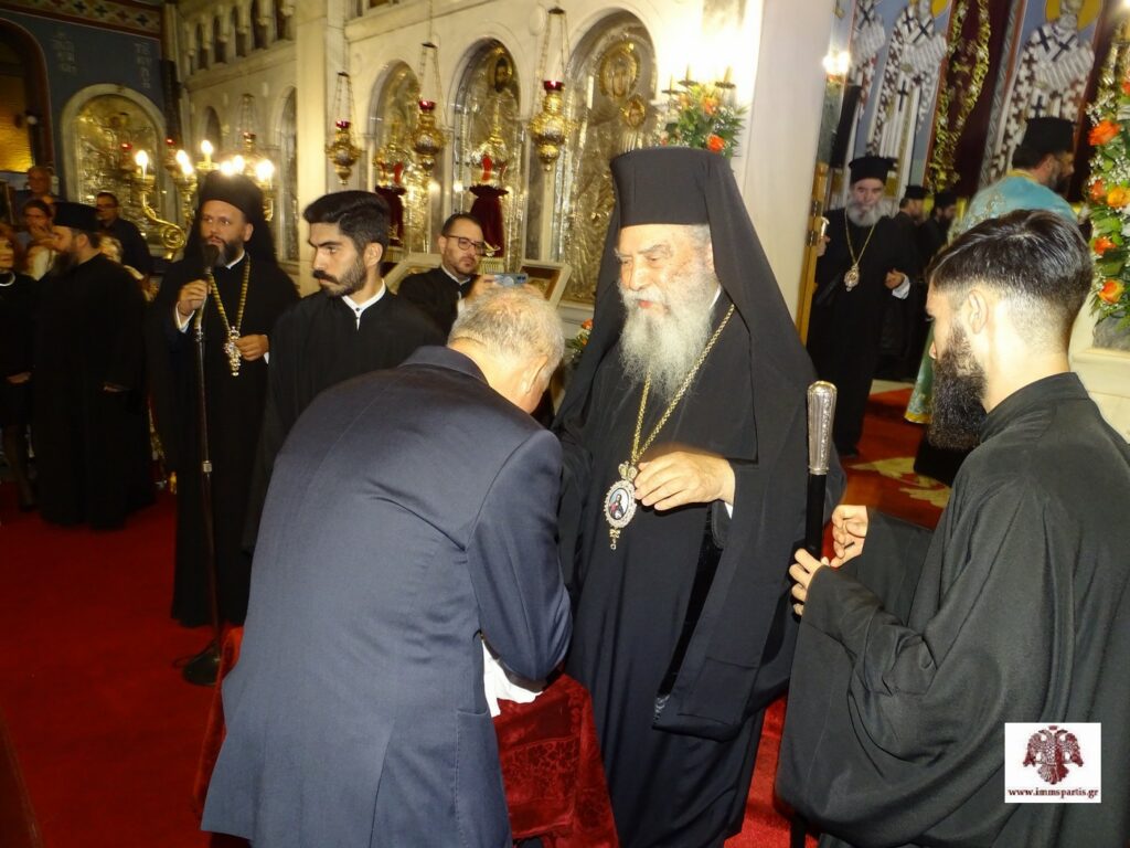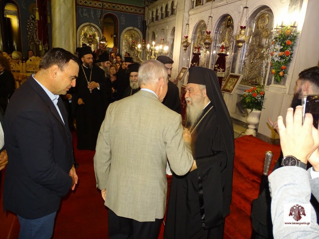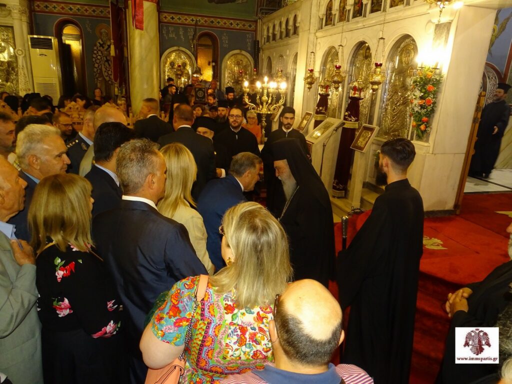 Μετά το πέρας της πανηγυρικής εσπερινής λατρευτικής σύναξης, ο σεπτός Ποιμενάρχης μας δέχθηκε τις ευχές των πιστών εντός του Ναού προσφέροντας παράλληλα ένα κέρασμα.