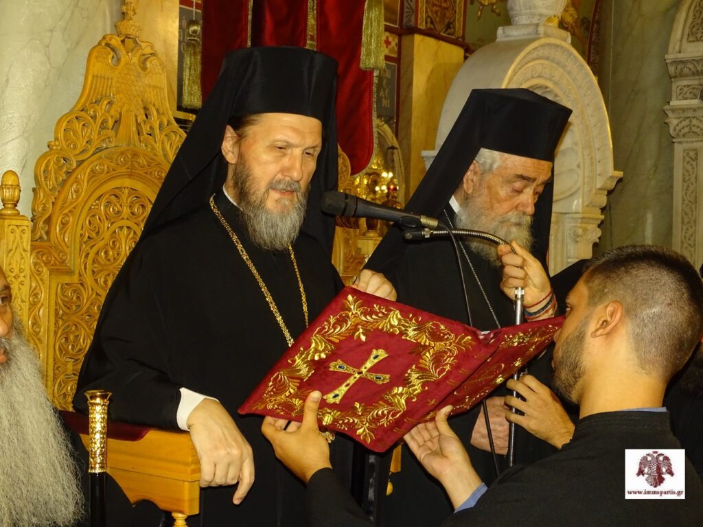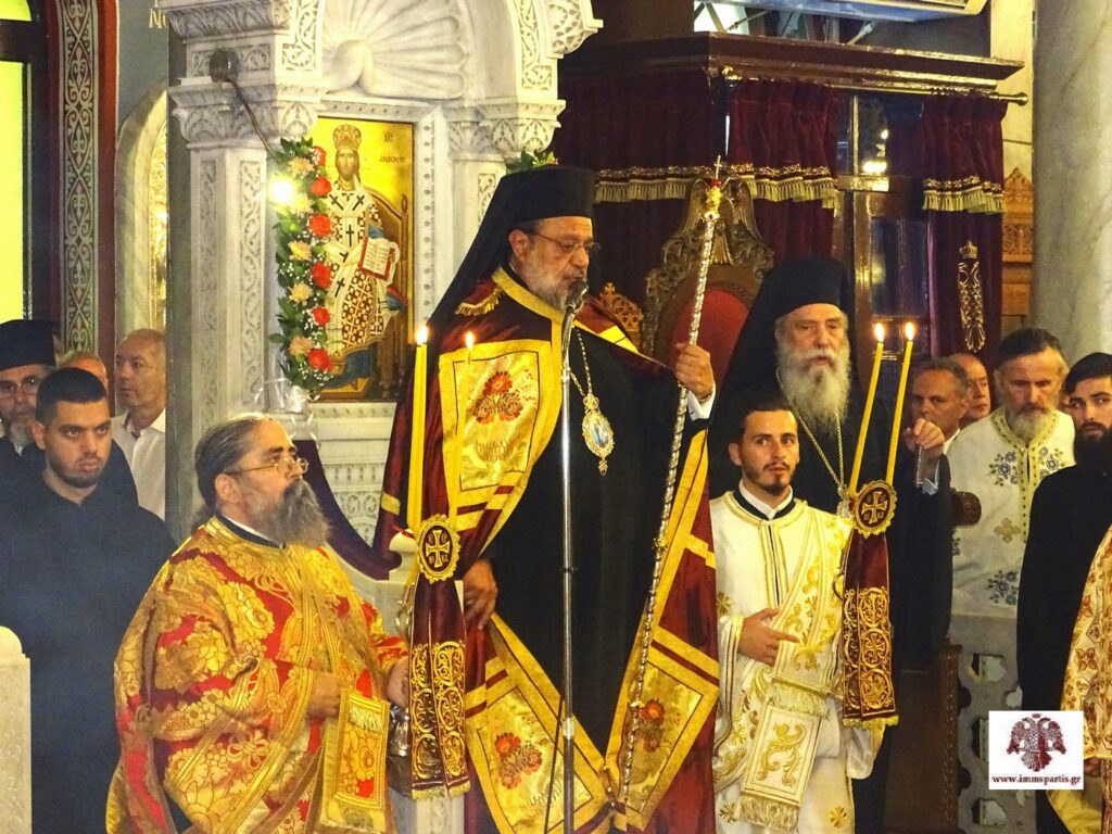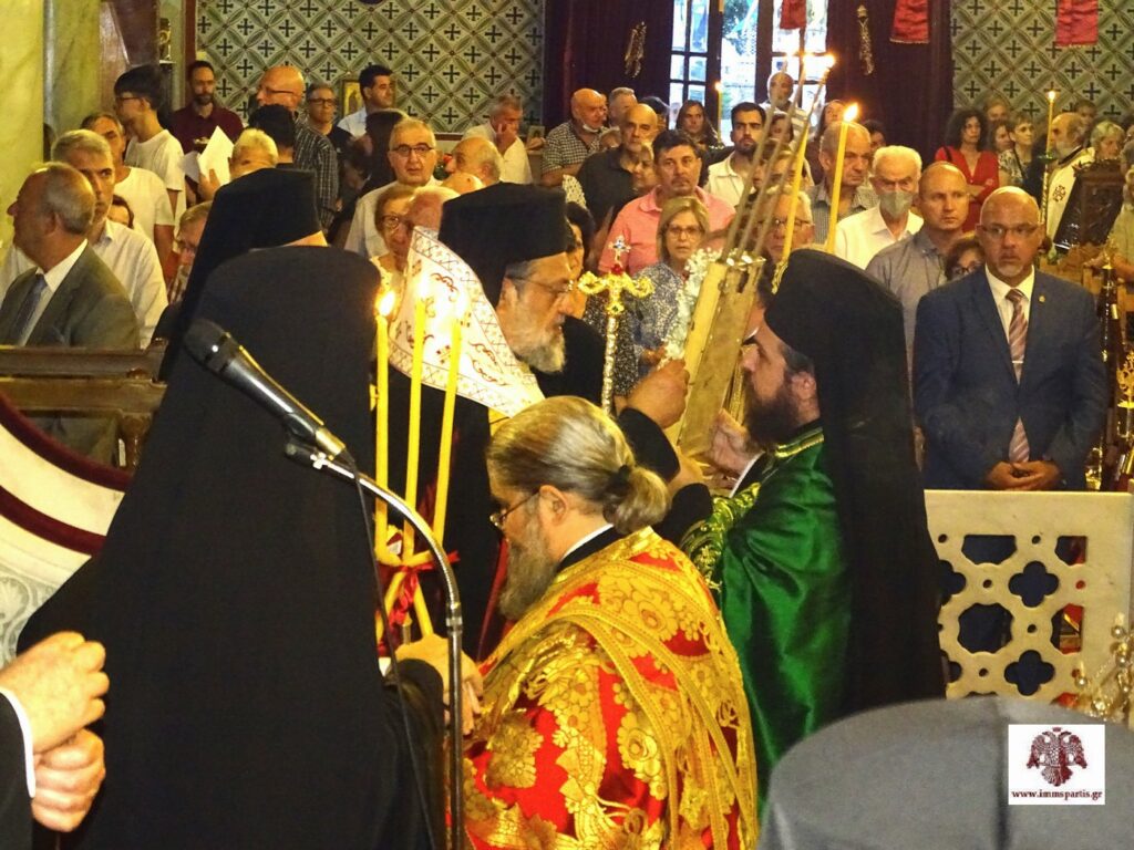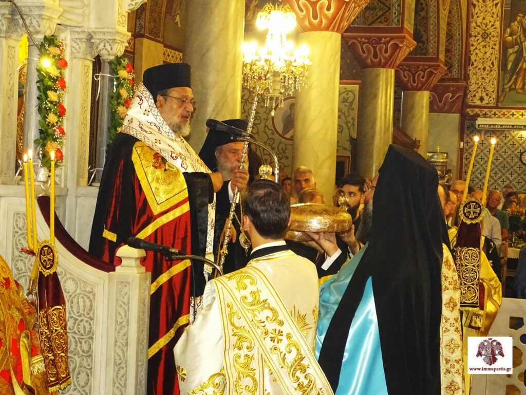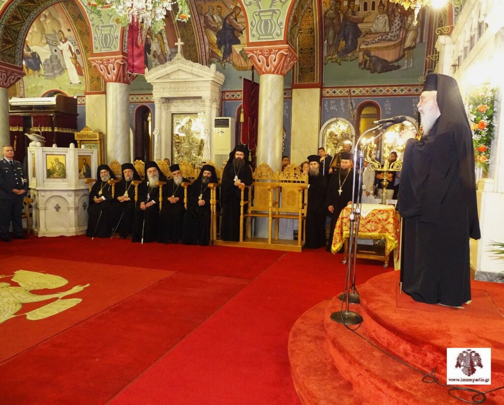 Μετά το πέρας της πανηγυρικής εσπερινής λατρευτικής σύναξης, ο σεπτός Ποιμενάρχης μας δέχθηκε τις ευχές των πιστών εντός του Ναού προσφέροντας παράλληλα ένα κέρασμα.