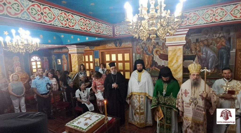 Στην πανηγυρική Θεία Λειτουργία συλλειτούργησαν οι σεβασμιώτατοι Μητροπολίτες Πατρών κ. Χρυσόστομος και Μάνης κ. Χρυσόστομος, καθώς και ο θεοφιλέστατος Επίσκοπος Λακεδαιμονίας κ. Θεόφιλος. Προηγήθηκε η ακολουθία του Όρθρου, χοροστατούντος του σεβ. Μητροπολίτου Πατρών, και η ευλόγηση των άρτων, ενώ ακολούθησε το ιερό Συλλείτουργο.