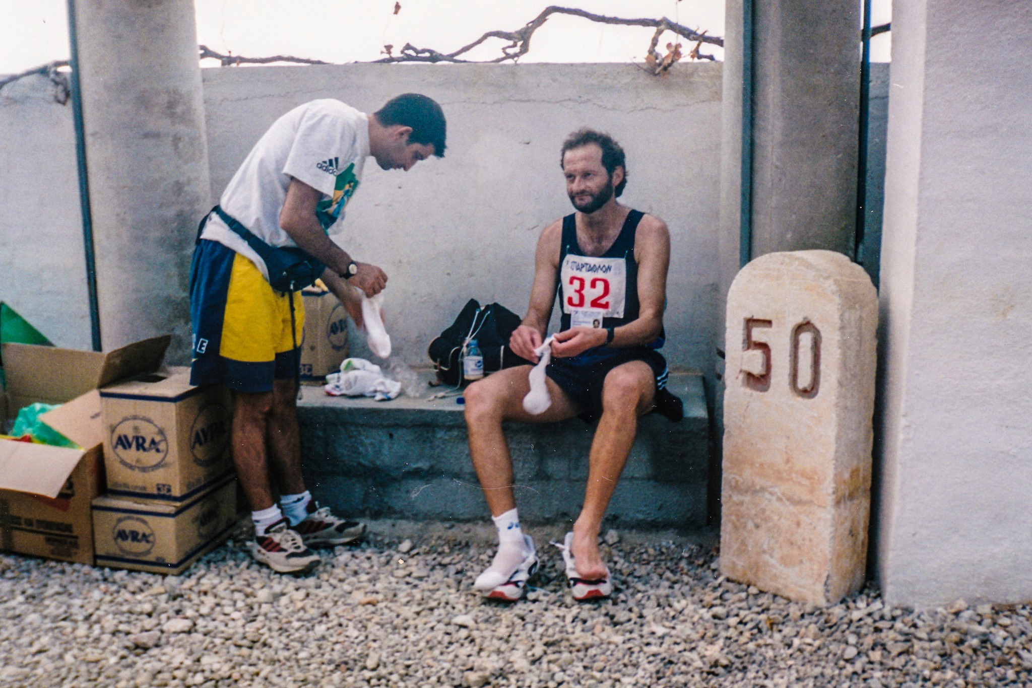 Πριν από 25 χρόνια, το μακρινό πια 2000, ο Κώστας Μιχαλόπουλος έγραψε ιστορία ως ο πρώτος Λάκωνας που τερμάτισε τον απαιτητικό υπερμαραθώνιο. Με επίδοση 34 ώρες και 29 λεπτά, κατέλαβε την 48η θέση ανάμεσα στους 79 αθλητές που ολοκλήρωσαν τον αγώνα εκείνη τη χρονιά. Περιττό να αναφερθεί ότι ο Μιχαλόπουλος έτυχε θερμότατης υποδοχής κι αποθέωσης στον ανδριάντα του Λεωνίδα, από τους συμπατριώτες του και τις τοπικές Αρχές. Το καλωσόρισμα του «δικού» μας παιδιού έγινε ήδη από την είσοδο της πόλης, με τον τολμηρό αθλητή να καταφτάνει συνοδεία πομπής ως τον τερματισμό.