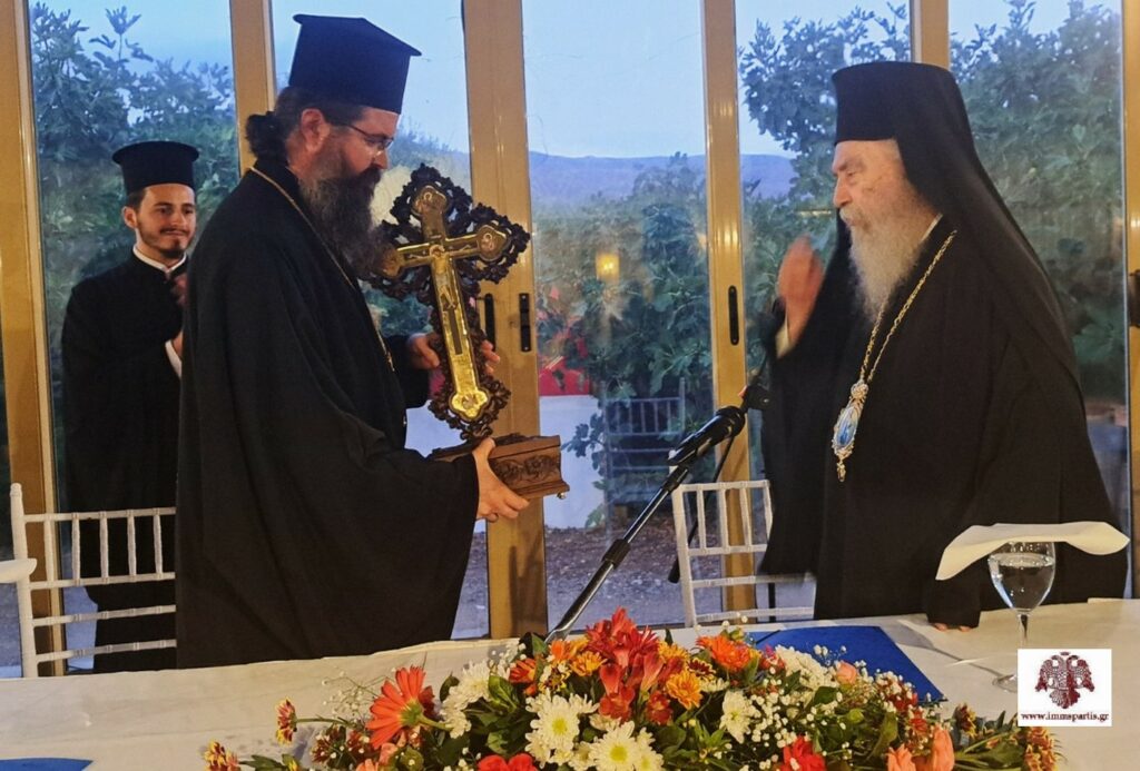 Πριν την ολοκλήρωση της Σύναξης, ο θεοφιλέστατος Επίσκοπος Λακεδαιμονίας κ. Θεόφιλος, εκ μέρους του ιερού κλήρου της τοπικής Εκκλησίας, πρόσφερε στον σεπτό Ποιμενάρχη, με την αφορμή της συμπλήρωσης 45 ετών ευλογημένης αρχιερατείας, έναν ξυλόγλυπτο σταυρό μετά αρτοφορίου. Ο θεοφιλέστατος εξέφρασε ευγνώμονες ευχαριστίες προς τον σεβασμιώτατο, «για το ανύστακτο ενδιαφέρον του για τους κληρικούς και τις οικογένειές τους, όπως και για το χριστεπώνυμο πλήρωμα της ΙΜΜΣ, ενώ του ευχήθηκε «ο Πανάγαθος Θεός να του χαρίζει υγεία και μακροημέρευση», ώστε να συνεχίσει να αποτελεί «τον καλό ποιμένα, τη σταθερή δύναμη, την πηγή γαλήνης και σοφής καθοδήγησης».