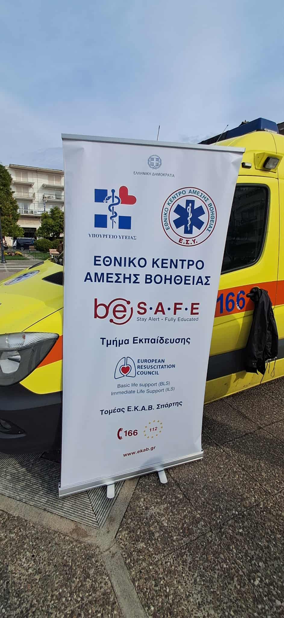 Παράλληλα, ενημέρωσαν το κοινό για τη σημασία της άμεσης ανταπόκρισης σε επείγουσες καταστάσεις, τον ρόλο και τη λειτουργία του ΕΚΑΒ στην παροχή προνοσοκομειακής φροντίδας και την αναγκαιότητα εξοπλισμού δημόσιων χώρων με απινιδωτές. Στην Σπάρτη έχουν τοποθετηθεί απινιδωτές στα παρακάτω σημεία: 2ο ΓΕΛ Σπάρτης, Συστεγασμένα Φαρμακεία - Κεντρική Πλατεία Σπάρτης, Εργατικοϋπαλληλικό Κέντρο Λακωνίας, Δημοτικό Στάδιο Σπάρτης και Ελληνική Ομάδα Διάσωσης Λακωνίας