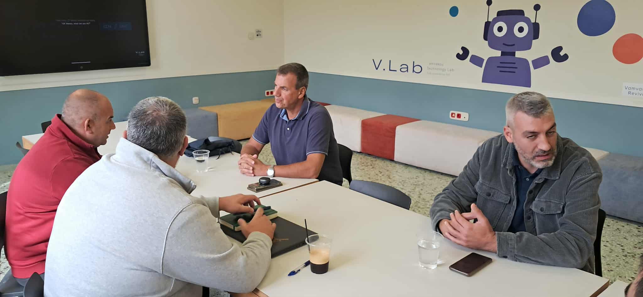 Ο δήμαρχος, συνοδευόμενος από τους αντιδημάρχους Τεχνικών Υπηρεσιών, Παναγιώτη Παυλή και Προγραμματισμού & Επιχειρηματικότητας, Παναγιώτη Τριτάκη, επισκέφθηκε το Σχολείο της Βαμβακούς, όπου στεγάζεται το Εργαστήριο Τεχνολογίας Βαμβακούς (V.Lab). Εκεί ενημερώθηκε αναλυτικά για τις πρωτοβουλίες του προγράμματος από τον διοικητικό υπεύθυνο της VR, Ανάργυρο Βερδήλο, τον υπεύθυνο προγραμμάτων, Χάρη Βασιλάκο και τον υπεύθυνο Τεχνικών Έργων & Υποδομών, Τάσο Μάρκο.