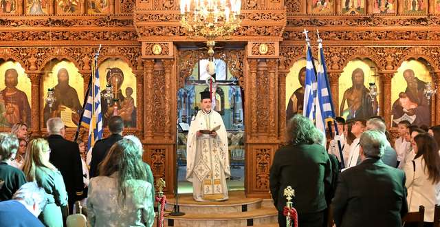 Οι εορταστικές εκδηλώσεις ξεκίνησαν με την επίσημη δοξολογία που τελέστηκε στον ΙΝ του Οσίου Λεοντίου, παρουσία των τοπικών αρχών, εκπροσώπων φορέων, μαθητών και πλήθους πολιτών.