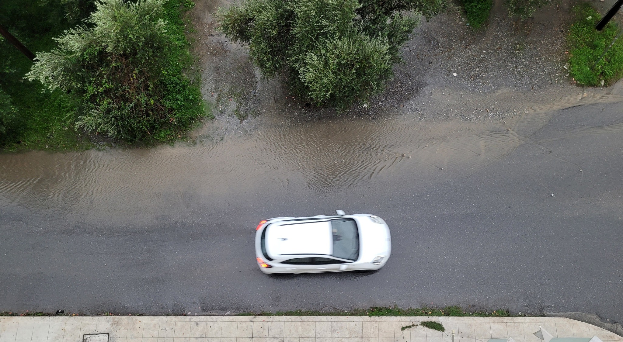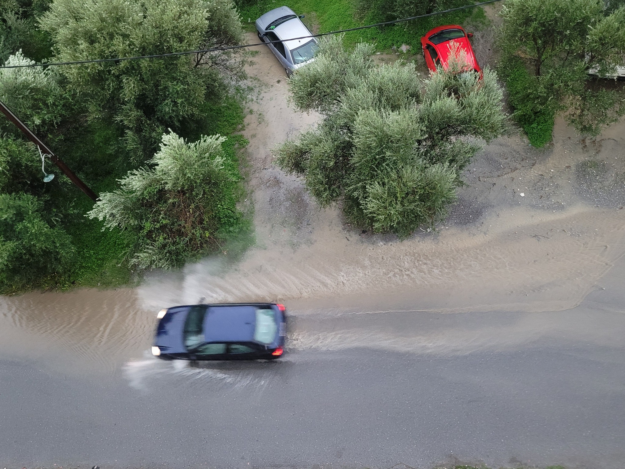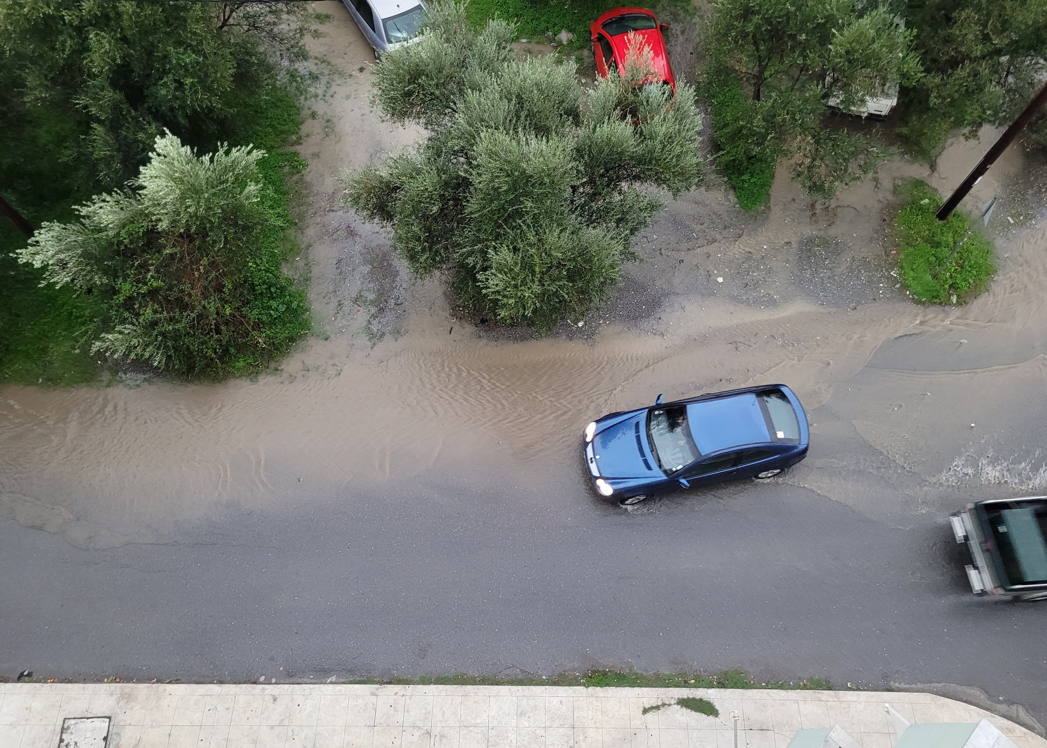 Στις φωτογραφίες φαίνεται η επικίνδυνη κατάσταση για οδηγούς και πεζούς που δημιουργείται κάθε φορά που έχουμε μια ισχυρή νεροποντή. Χωρίς διαπλάτυνση (ενώ για το κομμάτι με τις ελιές δεν υπάρχουν τίτλοι ιδιοκτησίας), χωρίς πεζοδρόμια και με επικίνδυνη κλίση στρίβοντας από τη Λεωνίδου.