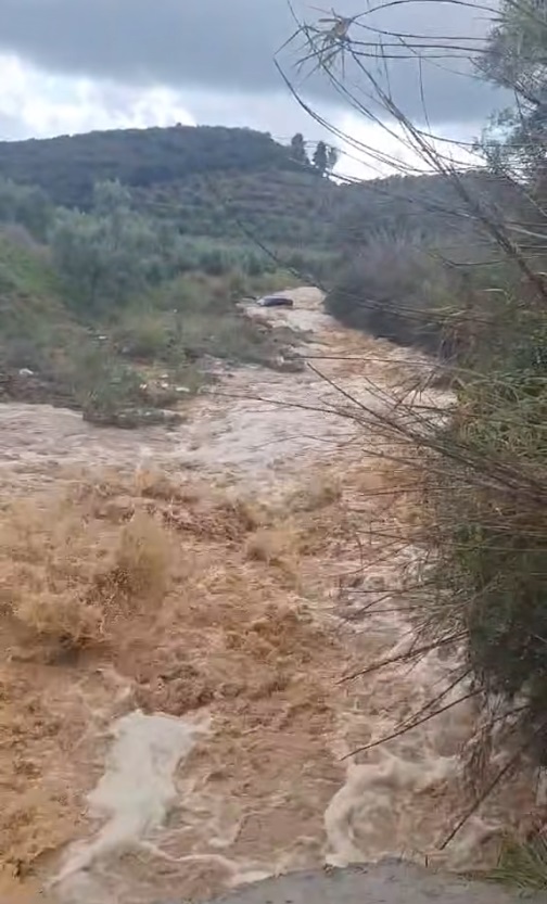 Ιδιαίτερη ανησυχία προκάλεσε περιστατικό που διαδραματίστηκε στην περιοχή ανάμεσα στους Μολάους και τα Νιάτα, όπου αγροτικό όχημα παρασύρθηκε από ορμητικό ρέμα. Ο οδηγός κατάφερε να εγκαταλείψει το όχημα την τελευταία στιγμή και να σωθεί, παρά τη σφοδρότητα των νερών που κατέβηκαν με ορμή από τα γύρω υψώματα.