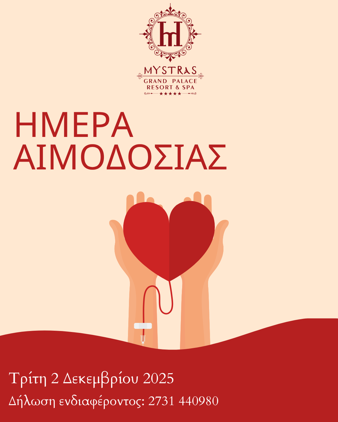 Ημέρα εθελοντικής αιμοδοσίας θα πραγματοποιηθεί την Τρίτη 2 Δεκεμβρίου, στις 17:00, στην αίθουσα Παλαιολόγος του Mystras Grand Palace. Η πρωτοβουλία αυτή δίνει την ευκαιρία σε όλους τους Σπαρτιάτες να συνεισφέρουν με δωρεά αίματος, σώζοντας ζωές και στηρίζοντας παράλληλα το τοπικό σύστημα υγείας, μέσα από μια πράξη αλληλεγγύης και κοινωνικής ευθύνης.