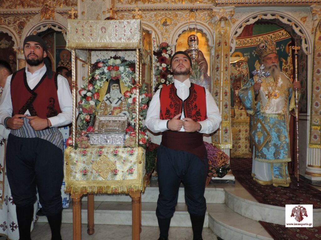 Το απόγευμα της παραμονής της εορτής, Σάββατο (8/11), τελέσθηκαν ο πανηγυρικός εσπερινός μετ’ αρτοκλασίας και η ιερά παράκληση στον Άγιο, χοροστατούντος του θεοφιλεστάτου Επισκόπου Λακεδαιμονίας κ. Θεοφίλου, ενώ ακολούθησε νυκτερινή Θεία Λειτουργία για τους αγρυπνόντες πιστούς.