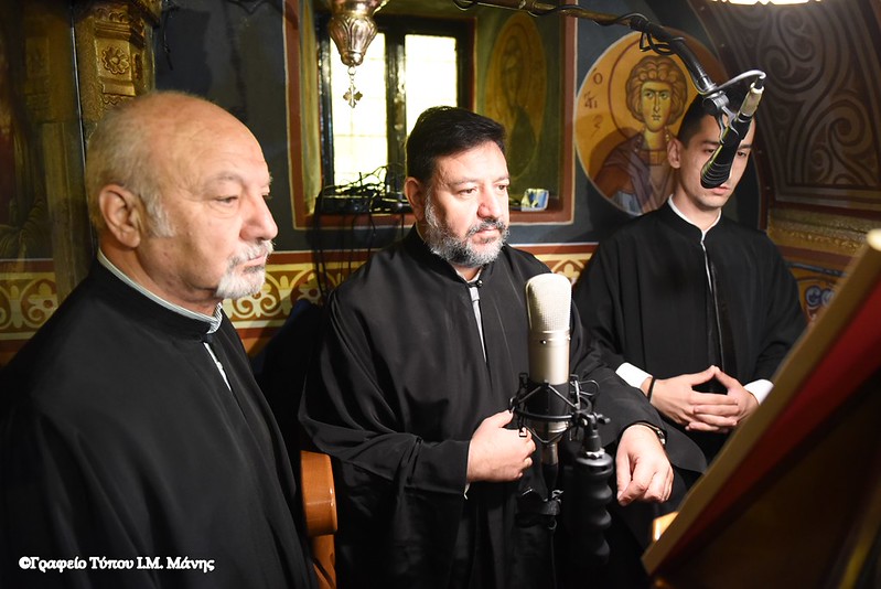 Τους ύμνους των ιερών ακολουθιών απέδωσε μελωδικά βυζαντινός χορός υπό τη διεύθυνση του πρωτοψάλτη κ. Νικολάου Ταπραντζή, προσδίδοντας ξεχωριστή κατανυκτική ατμόσφαιρα στη μεγάλη αυτή πανήγυρη.