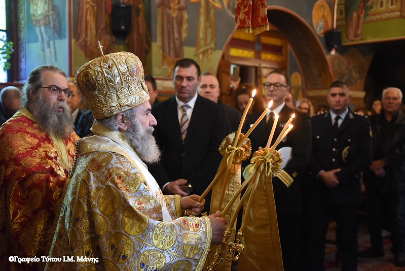 Μετά το πέρας της Θείας Λειτουργίας τελέστηκε επιμνημόσυνη δέηση υπέρ αναπαύσεως της ψυχής του αειμνήστου Μητροπολίτου Μάνης κυρού Χρυσοστόμου Β’, ο οποίος εκοιμήθη κατά τη διάρκεια της Θείας Λειτουργίας στον ίδιο ναό, στις 8 Νοεμβρίου 2017.
