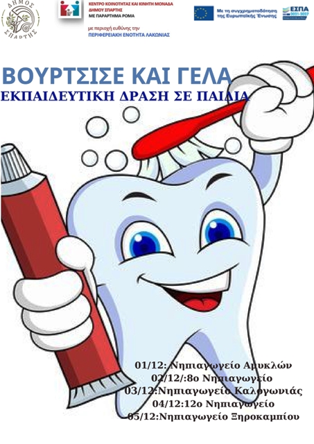 Μια όμορφη και ουσιαστική πρωτοβουλία για τους μικρούς μαθητές ξεκινά το Κέντρο Κοινότητας του Δήμου Σπάρτης, με στόχο να μετατρέψει το καθημερινό βούρτσισμα των δοντιών σε παιχνίδι, γνώση και χαρά. Η νέα δράση με τίτλο «Βούρτσισε και Γέλα» φιλοδοξεί να μυήσει τα παιδιά στη σημασία της σωστής φροντίδας των δοντιών από μικρή ηλικία, μέσα από έναν διαδραστικό και απολαυστικό τρόπο μάθησης.