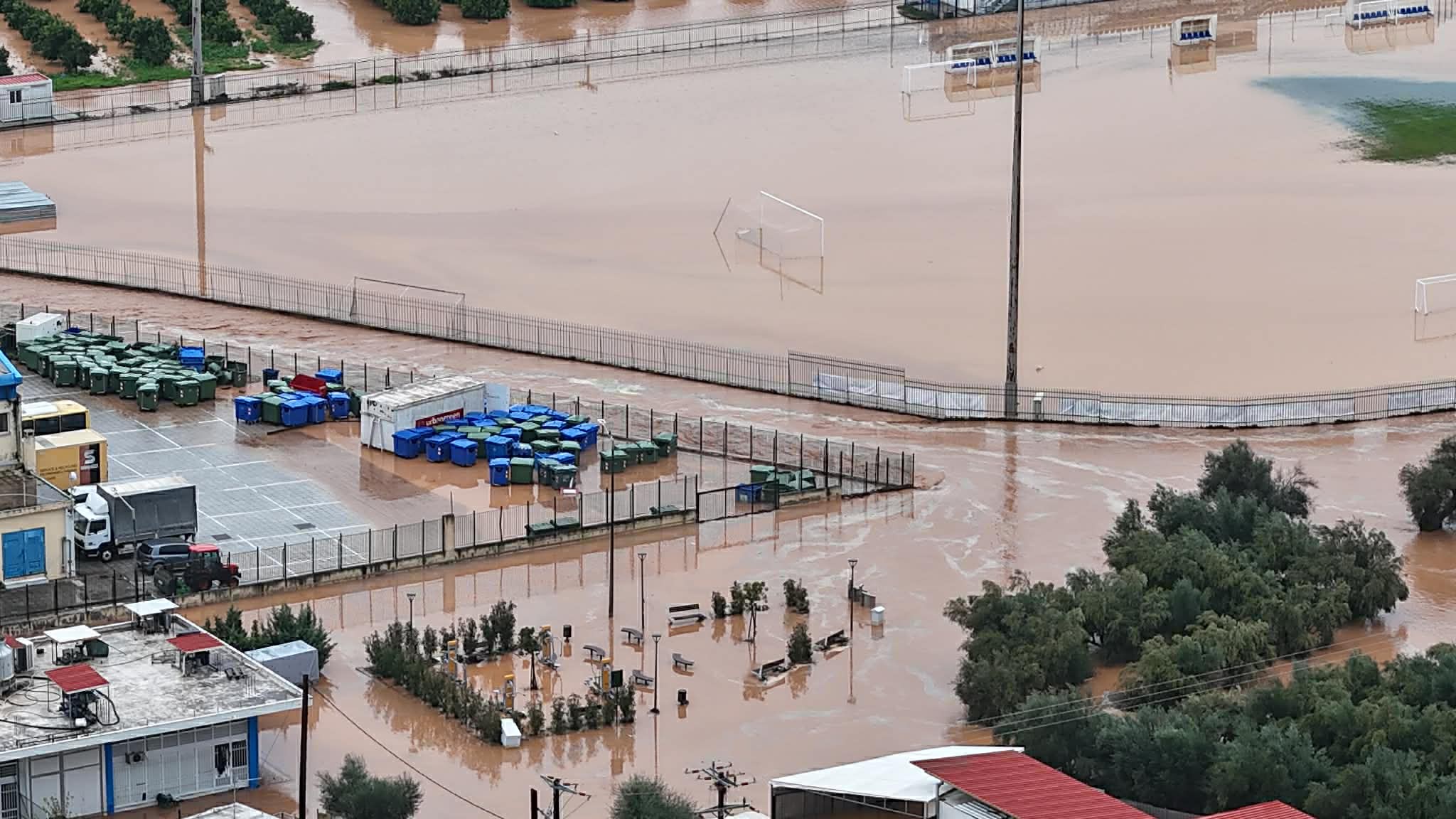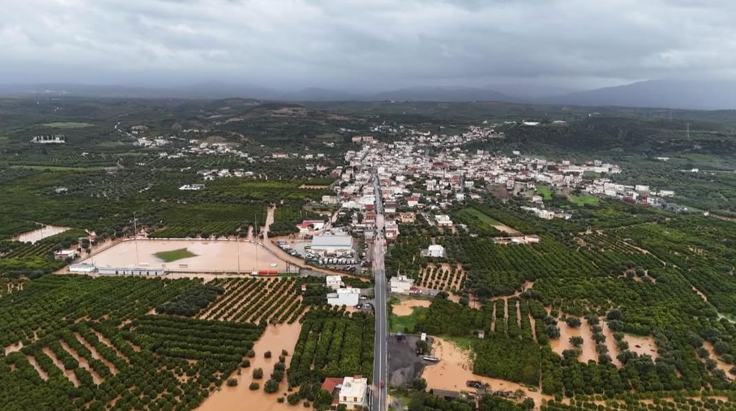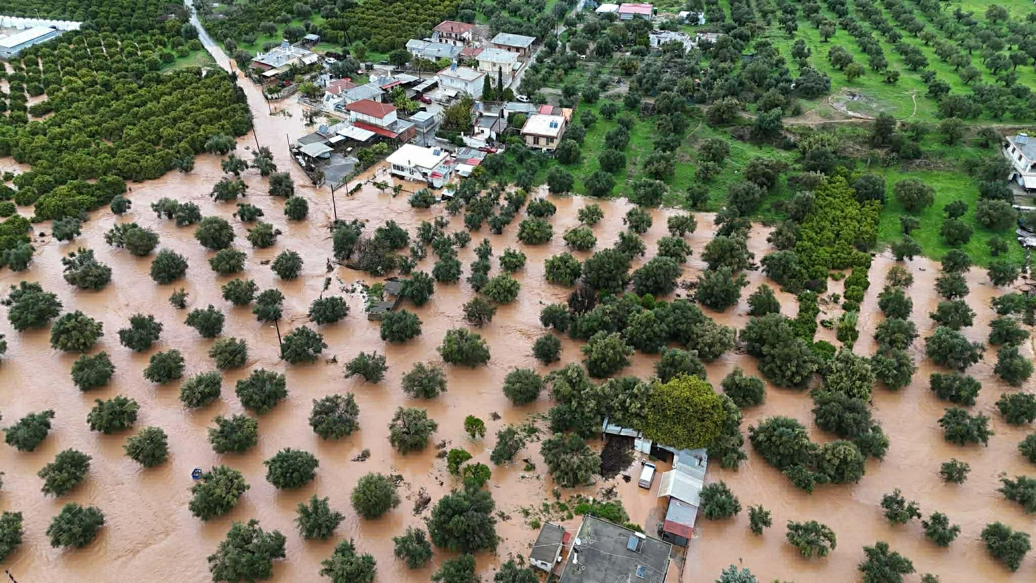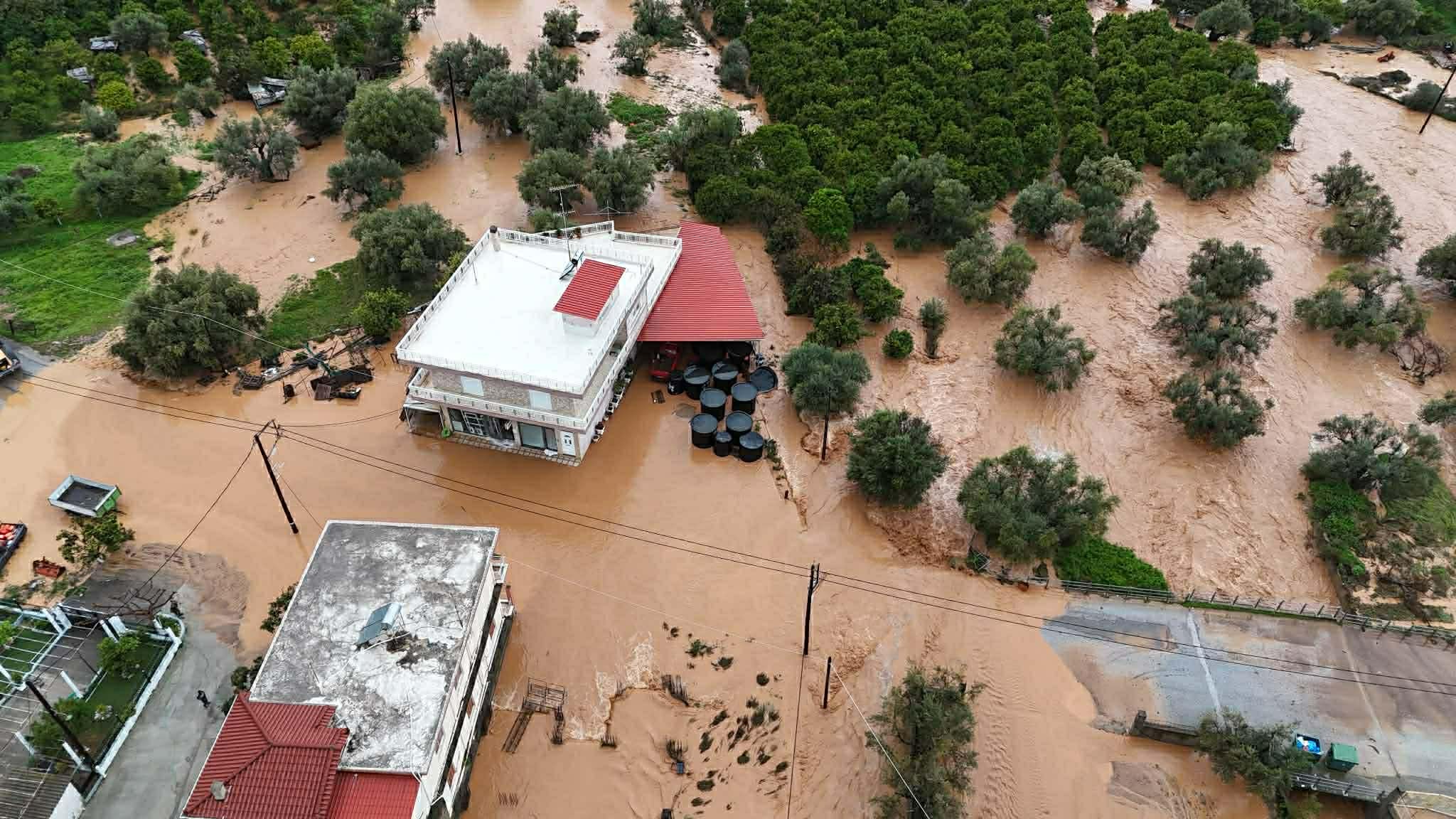 Νεότερη ενημέρωση (16:35): Εκτεταμένες οι πλημμυρισμένες εκτάσεις, οπως στον κάμπο στο Δέλτα Ευρώτα, νότια της Σκάλας.