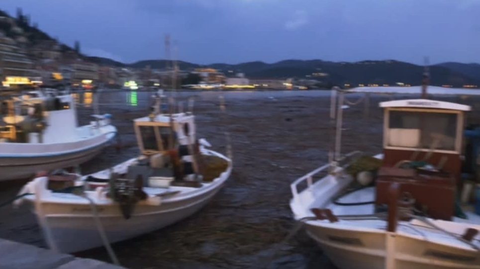 Νεότερη ενημέρωση (17:45): Στο Γύθειο η θάλασσα στο λιμάνι έχει γεμίσει λασπόνερα και φερτά υλικά.