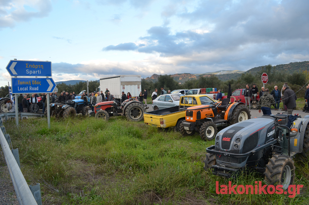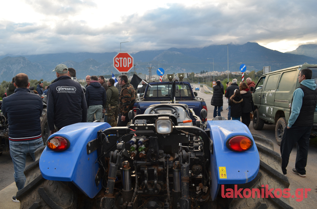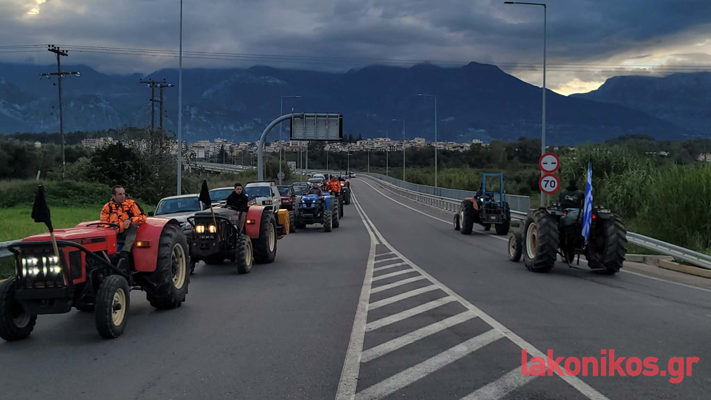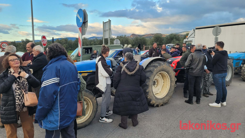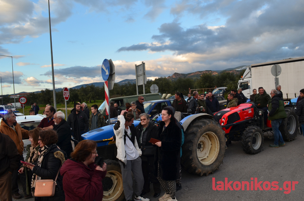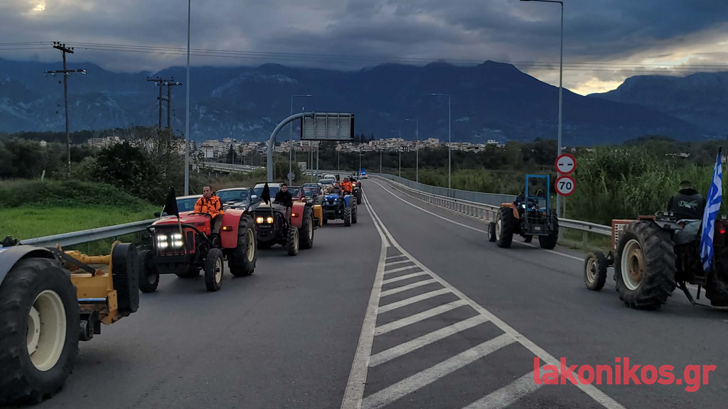 Μετά την προετοιμασία και τις αρχικές συγκεντρώσεις στις πλατείες χωριών, την Κυριακή (7/12), το ραντεβού με τις «επάλξεις» δόθηκε τη Δευτέρα (8/12) το απόγευμα στον κόμβο της νέας εισόδου Σπάρτης, όπου παραγωγοί συγκεντρώθηκαν με τρακτέρ και αγροτικά μηχανήματα. «Όλη η Ελλάδα δίνει αγώνα επιβίωσης, όλοι αγωνιούμε για το σήμερα και το αύριο. Τα αιτήματά μας είναι οι κατώτερες εγγυημένες τιμές. Ζητούμε μείωση του κόστους παραγωγής. Να αλλάξει ο κανονισμός του ΕΛΓΑ, ώστε να ασφαλίζει και να αποζημιώνει. Να γίνει αναπλήρωση του χαμένου εισοδήματος για το 2025 σε όλα τα προϊόντα. Σύνδεση της επιδότησης με την παραγωγή στη γεωργία και με το ζωικό κεφάλαιο στην κτηνοτροφία. Να σταματήσει αυτό που επιβάλει η ΕΕ. Να γίνουν αναγκαία έργα υποδομής σε κάθε περιοχή, αρδευτικά, αντιπλημμυρικά. Τις προάλλες πλημμυρίσαμε στον Δ. Ευρώτα και το καλοκαίρι δεν έχουμε νερό να ποτίσουμε τα χωράφια μας. Να γίνει πάγωμα οφειλών σε ασφαλιστικούς οργανισμούς, ΔΟΥ, τράπεζες, ΔΕΗ. Και τέλος όχι στη μείωση των πόρων της ΚΑΠ για την πολεμική προετοιμασία της Ευρώπης. Οι αγρότες είναι οι τελευταίοι θύλακες της ελληνικής κοινωνίας. Όλη η κοινωνία στηρίζεται πάνω μας. Θα αντιδράσουμε. Το βάρος πέφτει στις πλάτες της αγροτιάς και δεν μιλάει κανένας. Η Ελλάδα έχει ξεφτιλιστεί. Εξαθλίωση και φτώχεια παντού», τόνισε ο Γιάννης Μπλέτας, πρόεδρος του Αγροτοκτηνοτροφικού Συλλόγου Δ. Ευρώτα.