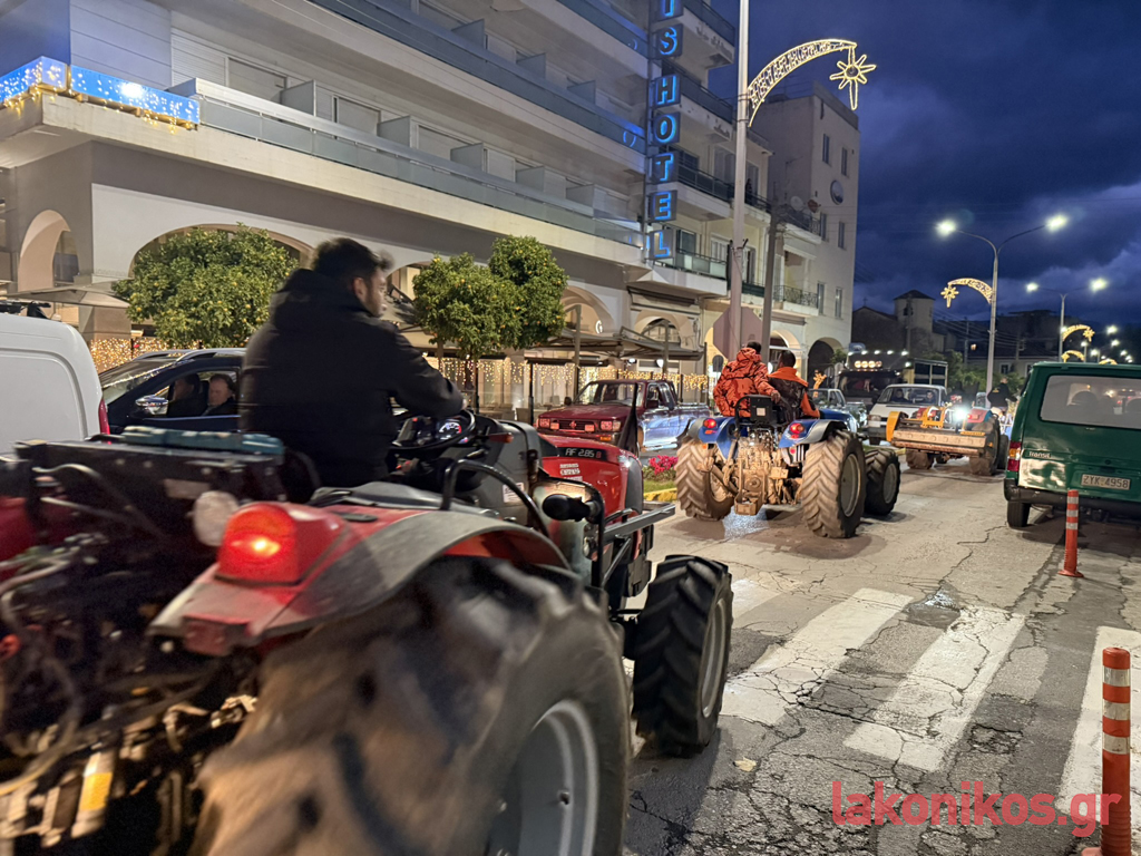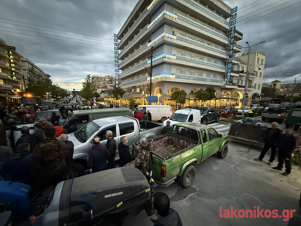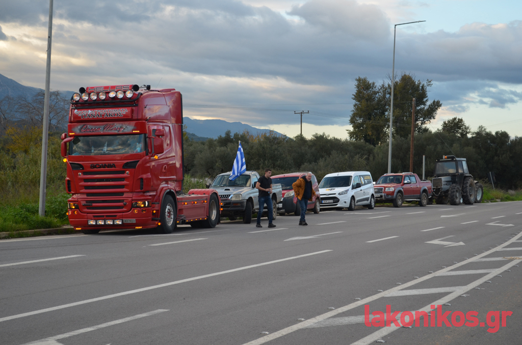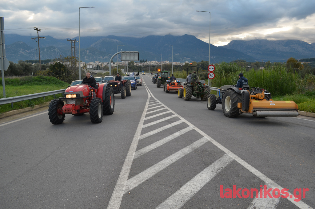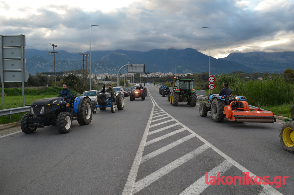 Μετά την προετοιμασία και τις αρχικές συγκεντρώσεις στις πλατείες χωριών, την Κυριακή (7/12), το ραντεβού με τις «επάλξεις» δόθηκε τη Δευτέρα (8/12) το απόγευμα στον κόμβο της νέας εισόδου Σπάρτης, όπου παραγωγοί συγκεντρώθηκαν με τρακτέρ και αγροτικά μηχανήματα. «Όλη η Ελλάδα δίνει αγώνα επιβίωσης, όλοι αγωνιούμε για το σήμερα και το αύριο. Τα αιτήματά μας είναι οι κατώτερες εγγυημένες τιμές. Ζητούμε μείωση του κόστους παραγωγής. Να αλλάξει ο κανονισμός του ΕΛΓΑ, ώστε να ασφαλίζει και να αποζημιώνει. Να γίνει αναπλήρωση του χαμένου εισοδήματος για το 2025 σε όλα τα προϊόντα. Σύνδεση της επιδότησης με την παραγωγή στη γεωργία και με το ζωικό κεφάλαιο στην κτηνοτροφία. Να σταματήσει αυτό που επιβάλει η ΕΕ. Να γίνουν αναγκαία έργα υποδομής σε κάθε περιοχή, αρδευτικά, αντιπλημμυρικά. Τις προάλλες πλημμυρίσαμε στον Δ. Ευρώτα και το καλοκαίρι δεν έχουμε νερό να ποτίσουμε τα χωράφια μας. Να γίνει πάγωμα οφειλών σε ασφαλιστικούς οργανισμούς, ΔΟΥ, τράπεζες, ΔΕΗ. Και τέλος όχι στη μείωση των πόρων της ΚΑΠ για την πολεμική προετοιμασία της Ευρώπης. Οι αγρότες είναι οι τελευταίοι θύλακες της ελληνικής κοινωνίας. Όλη η κοινωνία στηρίζεται πάνω μας. Θα αντιδράσουμε. Το βάρος πέφτει στις πλάτες της αγροτιάς και δεν μιλάει κανένας. Η Ελλάδα έχει ξεφτιλιστεί. Εξαθλίωση και φτώχεια παντού», τόνισε ο Γιάννης Μπλέτας, πρόεδρος του Αγροτοκτηνοτροφικού Συλλόγου Δ. Ευρώτα.