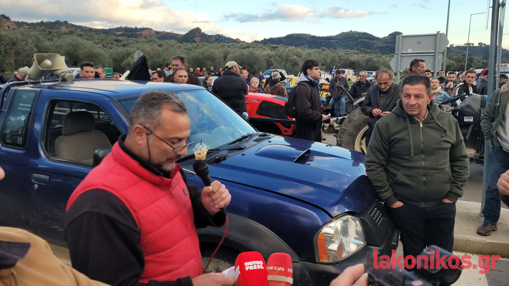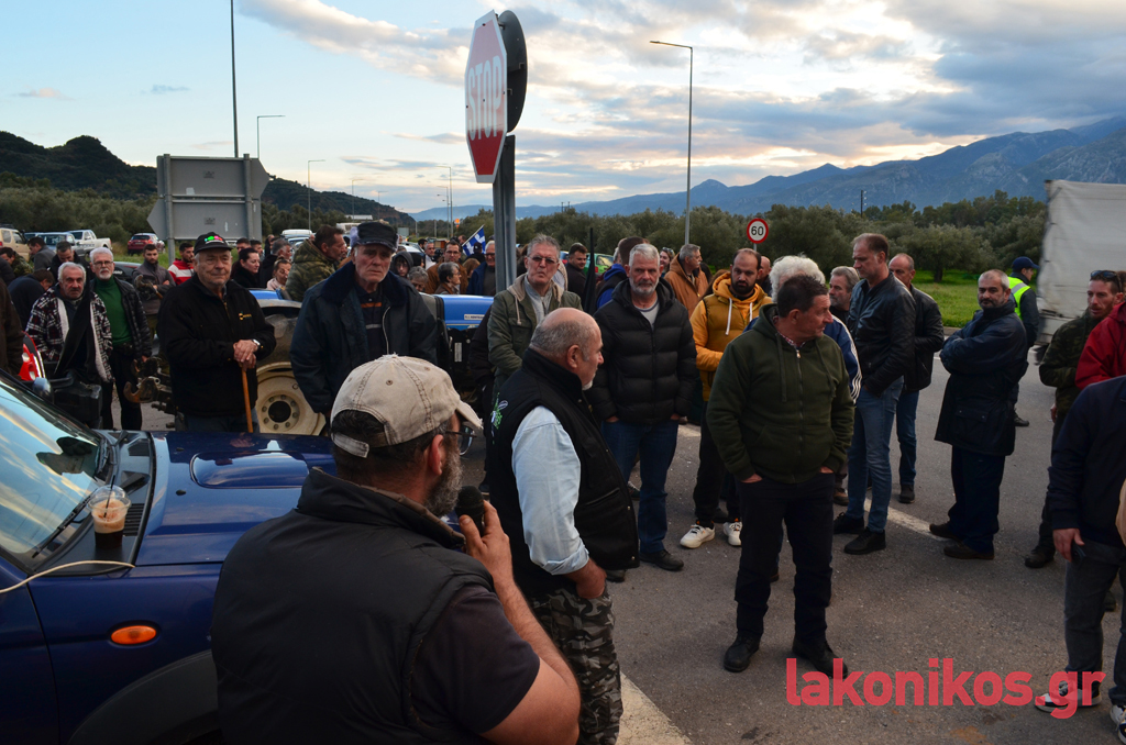 Παρενέβησαν το μέλος της Συντονιστικής Μπλόκου Λακωνίας, Βασίλης Βρουλίτης, ο οποίος έκανε λόγο για «δυναμικό “παρών” που δεν το περίμενε κανένας. Αν θεωρούν ότι οι αγρότες θα το βάλουμε κάτω, είναι γελασμένοι. Εμείς, και στην παραγωγή θα είμαστε και στον δρόμο του αγώνα. Δεν σταματάμε, δεν το βάζουμε κάτω, δίνουμε τη μάχη». Το μήνυμα από την παμπελοποννησιακή σύσκεψη στην Τρίπολη και από τα μπλόκα που αναπτύσσονται σε όλη την Περιφέρεια, είναι όπως υπογράμμισε ο κ. Βρουλίτης, ότι «όλη η Πελοπόννησος έδειξε την πραγματική μας δύναμη. Τα Χριστούγεννα θα μας βρουν στον δρόμο. Πρέπει να το βάλουμε καλά στο μυαλό μας ότι η μόνη λύση για να επιβιώσουμε στα χωριά και τα χωράφια, η μόνη λύση είναι ο δρόμος και τα μπλόκα». Επέκρινε τη στάση του πρωθυπουργού και τη κυβέρνησης που είπε ότι «συζήτηση με τους αγρότες θα γίνει με ανοιχτούς τους δρόμους. Είναι γελασμένος. Το προηγούμενο διάστημα δεν δέχθηκε ομοσπονδίες και συλλόγους. Ποιες ανοιχτές πόρτες; Μόνο με τους “Φραπέδες” ξέρουν να κουβεντιάζουν». Και πρόσθεσε: «Τον προηγούμενο μήνα που δεν μπήκαν οι επιδοτήσεις, ήταν όλοι κι έκλαιγαν με μαύρα μαντήλια. Γιατί αγρότες χωρίς λεφτά, μαγαζί χωρίς δουλειά. Χωρίς αγρότες δεν υπάρχουν χωριά, σχολεία και δουλειά. Όλος ο λαός είναι στο πλευρό μας».