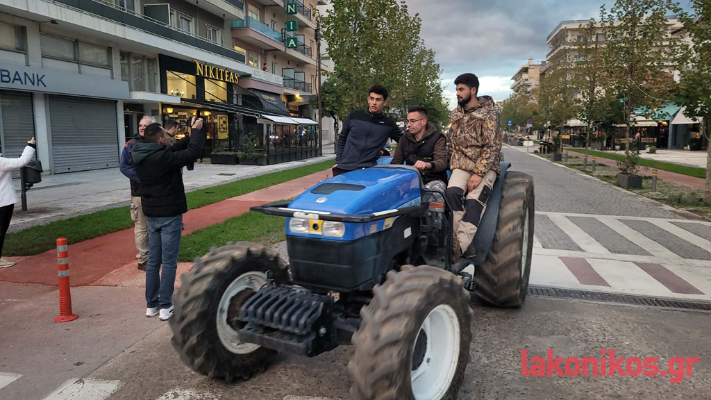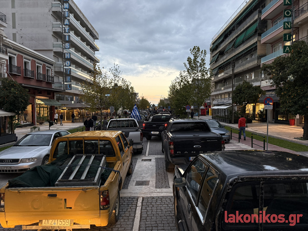 Ακολούθησε μηχανοκίνητη πορεία, μέσω της νέας γέφυρας προς το κέντρο της πόλης, όπου οι εξεγερθέντες παρέταξαν τρακτέρ και αγροτικά οχήματα με μαύρες σημαίες στο «βαρέλι του τροχονόμου», στη συμβολή Κ. Παλαιολόγου και Λυκούργου.