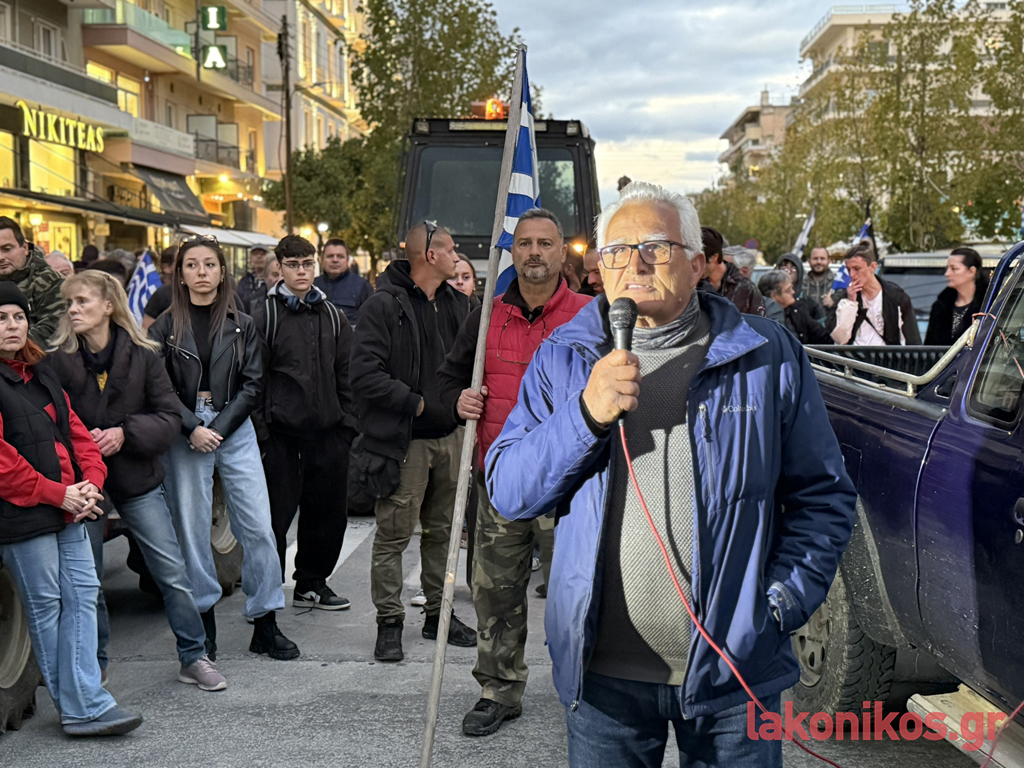 Τη δική του «ψήφο» συμπαράστασης έδωσε και ο πρόεδρος του Σωματείου Συνταξιούχων ΙΚΑ-ΕΦΚΑ Λακωνίας, Βασίλης Σαραντόπουλος, που τόνισε ότι «είμαστε αλληλέγγυοι στους αγρότες, στηρίζουμε τα αιτήματά τους, είναι τα ίδια που απασχολούν όλο το λαό και τους συνταξιούχους. Δεν έχουμε να περάσουμε τον μήνα. Οι συντάξεις -και ιδίως τον αγροτών- είναι κατακρεουργημένες. Έχουν δώσει χρόνια και χρόνια εισφορές και παίρνουν 450 ευρώ».