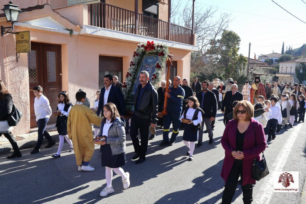 Ακολούθησε, σε κατανυκτικό κλίμα, η καθιερωμένη από το 1921 λιτάνευση της εικόνας του Αγίου Σπυρίδωνος στους κεντρικούς δρόμους του Μυστρά, υπό τους παιανισμούς της Φιλαρμονικής του Δ. Σπάρτης, της οποίας ο Άγιος Σπυρίδωνας είναι και προστάτης.